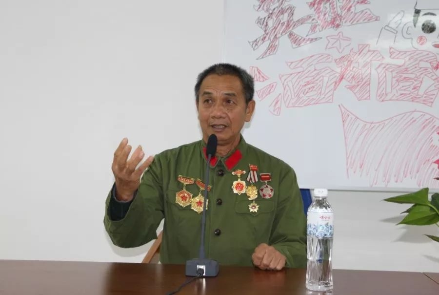 分享会上,梁盛春老兵从入伍讲起,以生动形象的方式,为大家讲述了在军营生活中训练的点点滴滴,重现了当年战场上惊心的每一幕,其中具体讲述了1979年的戍边卫国战。虽然战事已经过去了40年,但战场的场景依旧历历在目,梁盛春老英雄每每回忆起,都眼泛泪花。现场的同学听后无不感慨战争残酷,同时又流露出对保卫祖国作出贡献、牺牲的战士们报以崇高敬意,感触良多。最后,分享会在同学们经久不息的掌声中圆满结束。