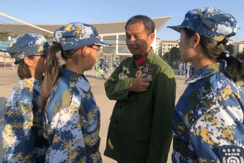 眼下正值我校开展军训活动时期,梁老英雄走到训练场与教官、同学们见面,同学们都争先恐后跟梁老英雄握手,对梁老雄表示热烈的欢迎与崇高的敬意。