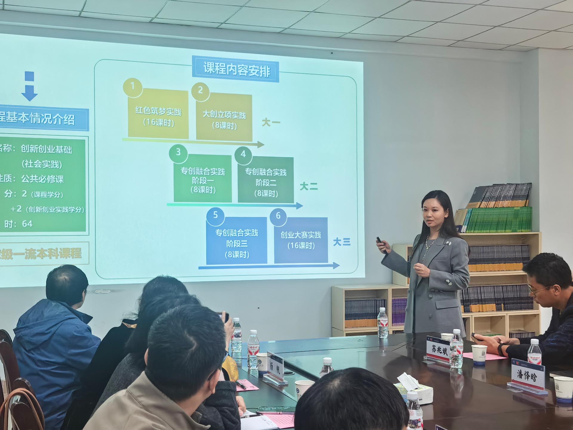 随后,双方在大学生创业园导师发展中心召开经验交流座谈会。会上,黄如教授对我校一流本科课程《创新创业基础(社会实践)》进行了专题介绍,围绕“红色筑梦实践”“大创立项实践”“专创融合实践”“创业大赛实践”四大实践模块解读课程设计思路,并重点分享了我校首个中国国际大学生创新大赛国赛银奖项目“不惑青春”的培育经验,与在座教师深入交流创新创业教育教学心得。