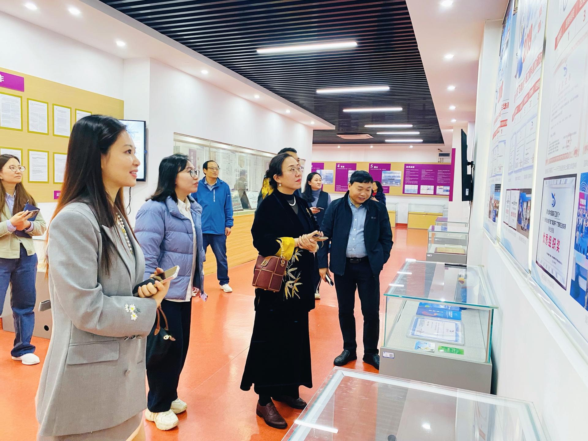 首先,韦良副院长一行前往南宁学院创新创业成果展厅参观。解说员李梓昕引导大家依次参观“邕水敷文,庚续千年文脉”“行知范式,践行育人初心”“实践育人,赋能高速成长”“桃李芬芳,彰显最高荣耀”四个展区,详细讲解了我校创新创业教育的发展概况、改革举措及育人成效。