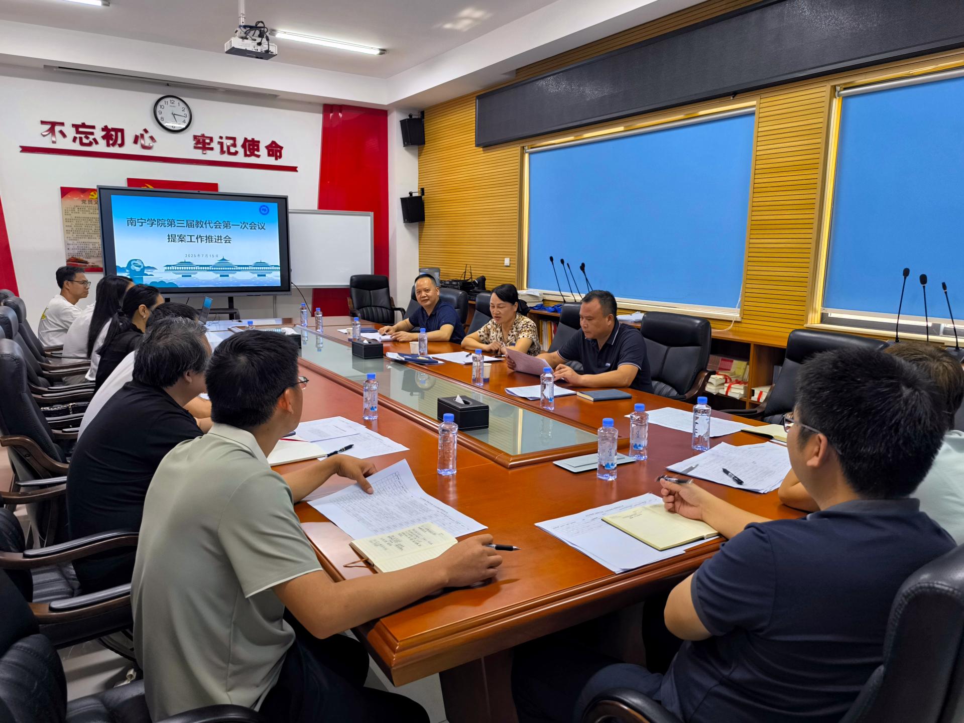 7月15日下午,南宁学院第三届教代会第一次会议提案工作推进会在行政楼514会议室召开。校党委副书记、副校长韦粤桂,副校长、工会主席龚击出席会议。学校工会提案工作委员会委员以及提案承办单位代表参加会议。校长助理、党委宣传部部长、校工会常务副主席陈铁主持会议。