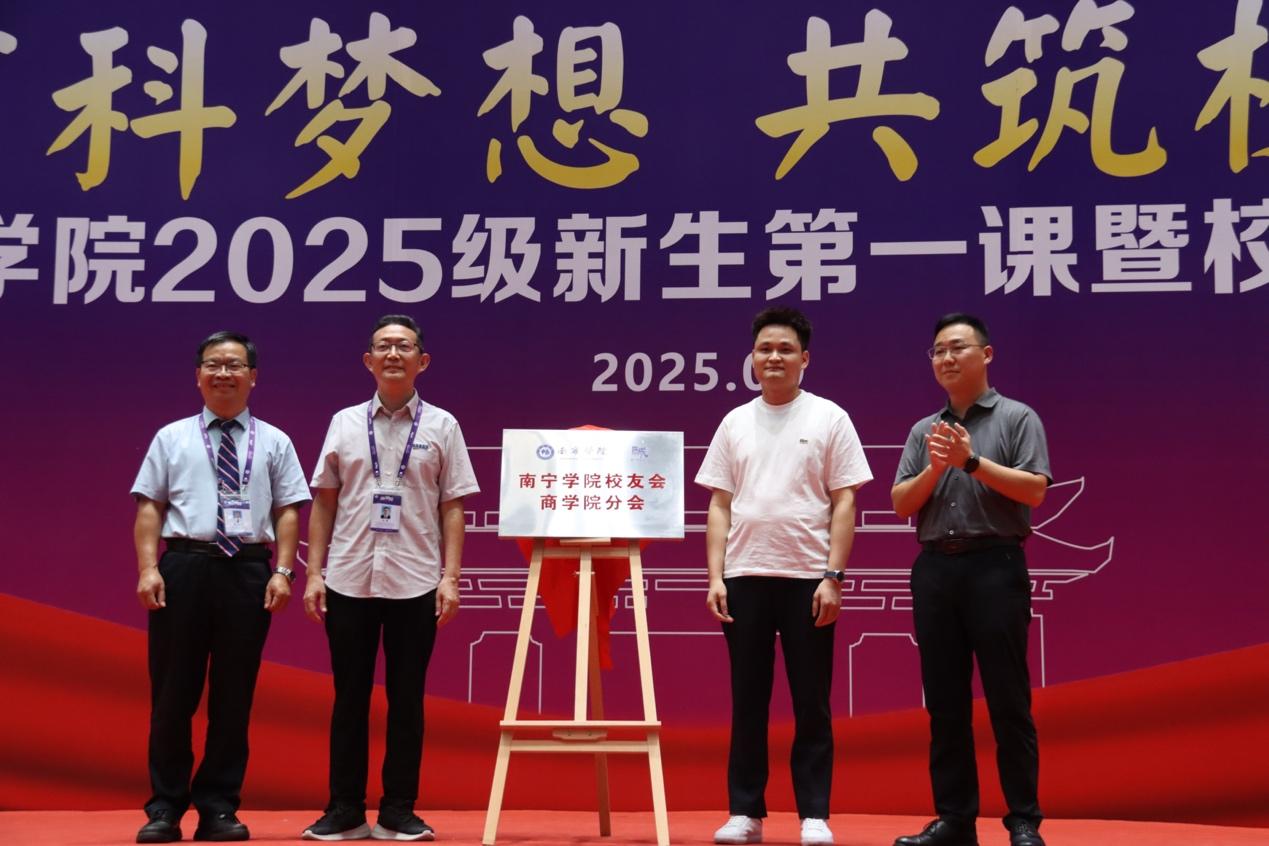 秋风送爽,丹桂飘香。9月2日下午,南宁学院体育馆内掌声与笑声交织,商学院2025级新生第一课暨校友分会成立仪式隆重举行。商学院领导、全体教职工、校友与企业代表,以及2022级、2023级、2024级学生代表和2025级全体新生齐聚一堂,共同见证这一兼具传承与启航意义的盛典。