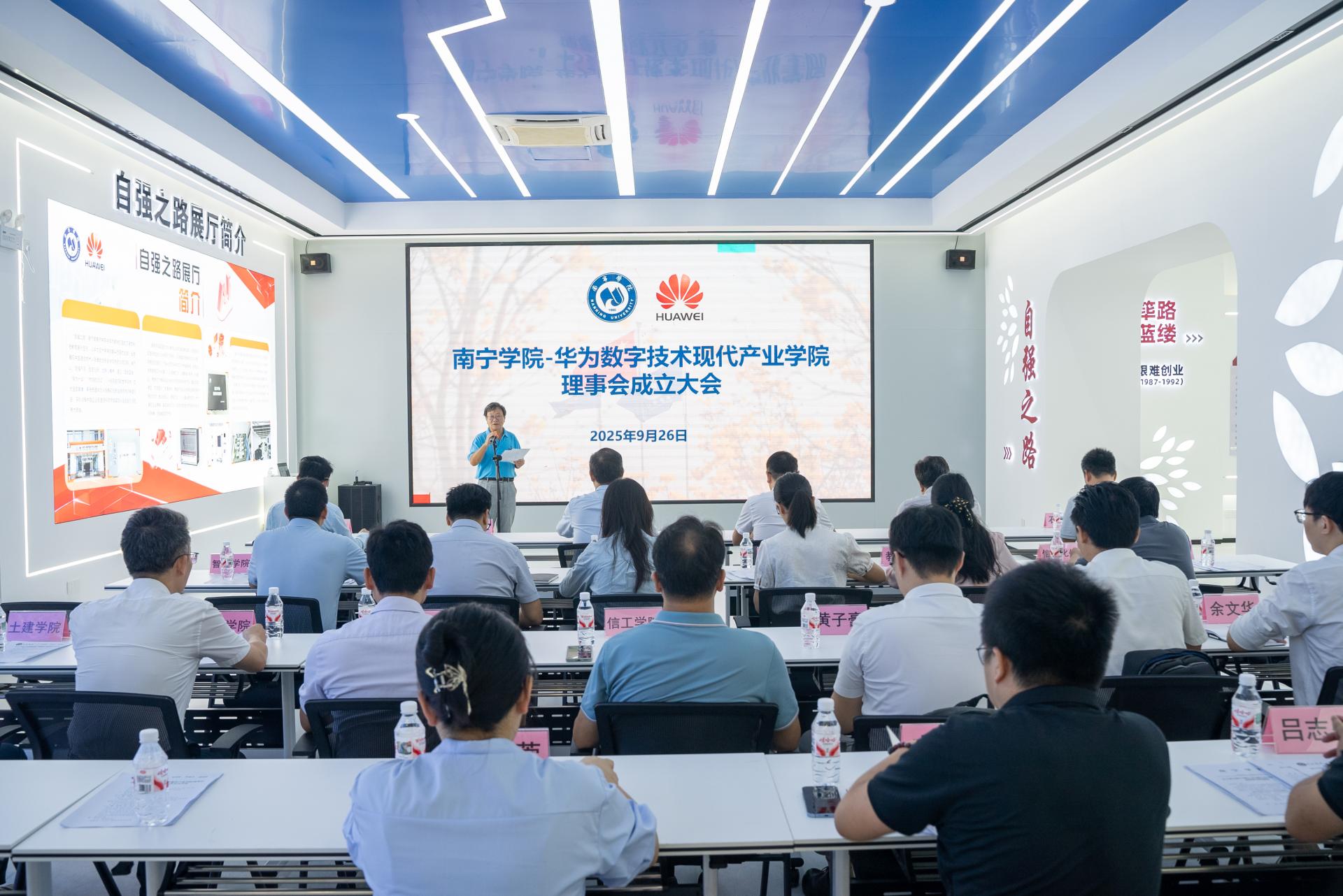 9月26日上午,南宁学院—华为数字技术现代产业学院理事会成立大会暨第一次会议在南宁学院华为楼举行,会议分两个阶段推进,先后在华为楼一楼大厅、209会议室开展,大会由副校长李陶深主持。本次会议参会人员有华为、塔易技术的代表,南宁学院校领导及多部门负责人。