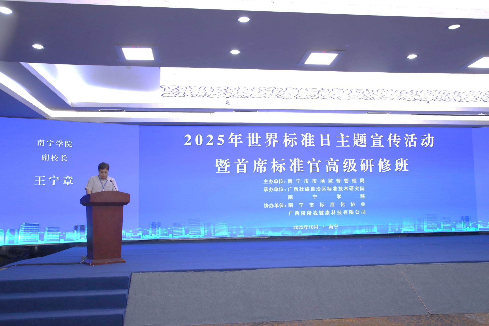 标准引领未来,人才支撑发展。10月14日,在第56届世界标准日之际,南宁学院与南宁市市场监管局、广西标准技术研究院共同举办了“2025年世界标准日主题宣传活动暨首席标准官高级研修班”。 本次活动以“智启标准·创领未来—人工智能赋能标准化高质量发展”为主题,采用“线上+线下相结合”的方式,通过直播平台同步开放观看通道。