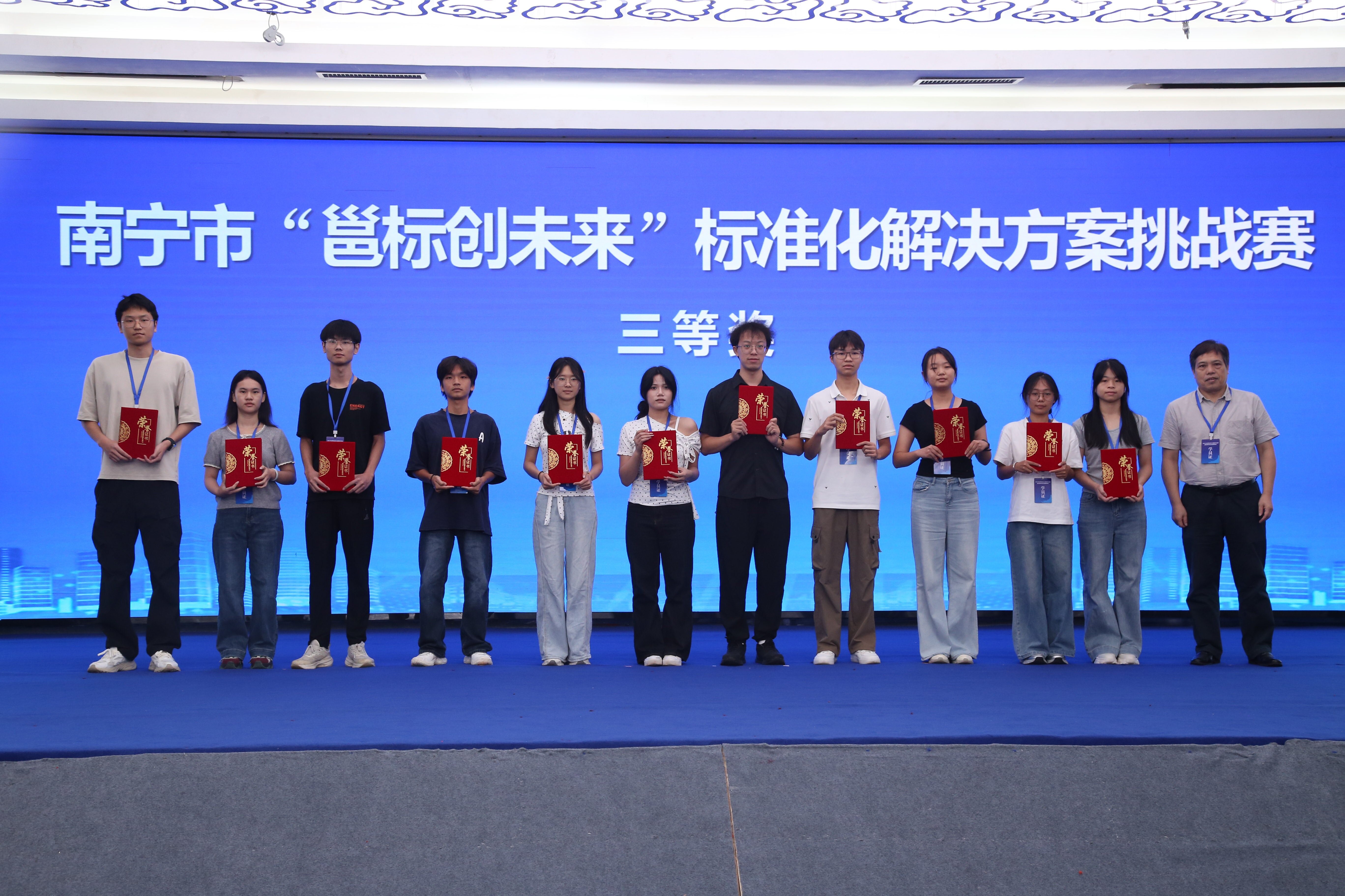 本次活动设有南宁市“邕标创未来”标准化解决方案挑战赛颁奖仪式,此项赛事吸引了全区20多所高校、职业技术培训机构的近百支队伍参赛,涌现出一批富有创新性和实践价值的标准化解决方案。作为主办方之一,南宁学院不仅积极组织学生参与竞赛,更通过“以赛促学、以赛促创”的教育理念,将理论知识与实践应用紧密结合,充分展现了学校在标准化教育领域的创新实践和丰硕成果。