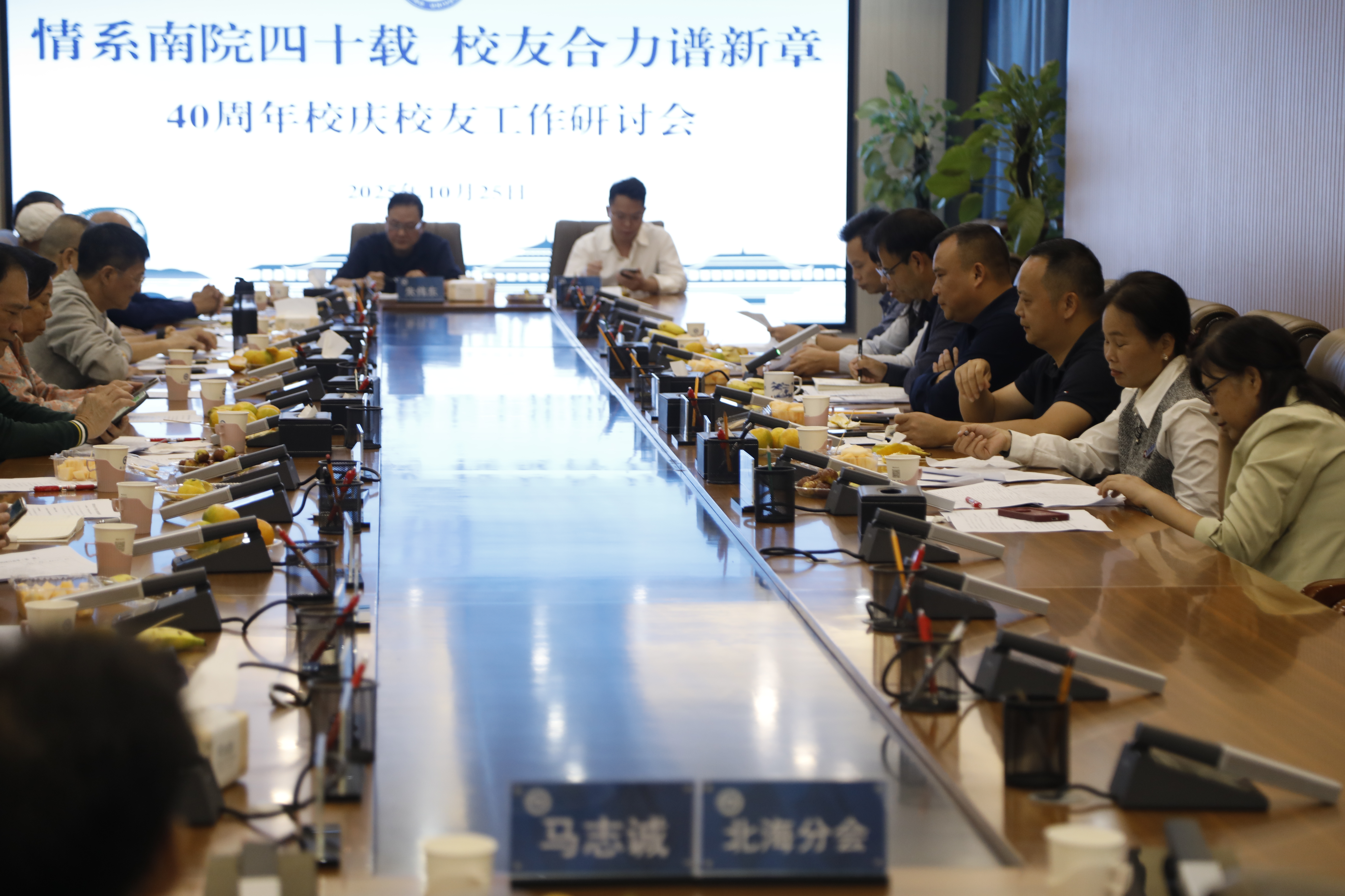 四秩传薪火,邕江涌深情。10月25日下午,学校在行政楼400会议室召开南宁学院40周年校庆校友工作座谈会。学校党委委员、副校长、校友总会会长龚击及学校相关部门、校友总会领导陈铁、李林伟、杨小凤、黄丽军、陆海兰、蓝军斌与来自各地校友分会的会长、副会长、秘书长及校友代表共聚一堂,围绕学校40周年校庆有关议题展开深入交流,共话母校发展。会议由党委办公室、校长办公室、校友工作办公室主任李林伟主持。