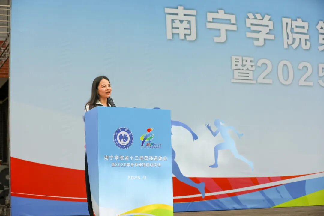 校长助理、体育工作委员会常务副主任赵田英在闭幕式致辞中表示,本届运动会中,全体运动员奋勇争先、顽强拼搏,裁判员秉公执裁、严谨细致,工作人员与志愿者恪尽职守、倾情奉献,各学院和部门通力协作、密切配合,共同营造了生机勃勃、活力四射的校园体育氛围。她希望全校师生以此次运动会为契机,树立“健康第一”理念,让体育锻炼成为日常习惯,让体育精神融入成长血脉,以更饱满的状态投入到学习、工作与人生征程中,为学校高质量发展贡献力量。最后,党委书记刘彪宣布南宁学院第十三届田径运动会正式闭幕。各代表队有序离场,本届盛会也在掌声中画上圆满句号。青春赛道无终线,奋斗脚步永向前。