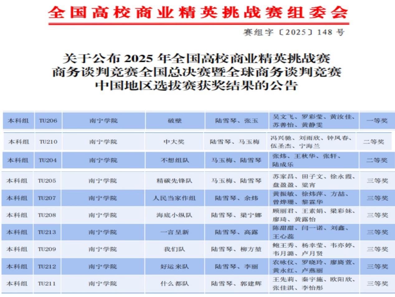 大赛主委会公布南宁学院获奖团队信息