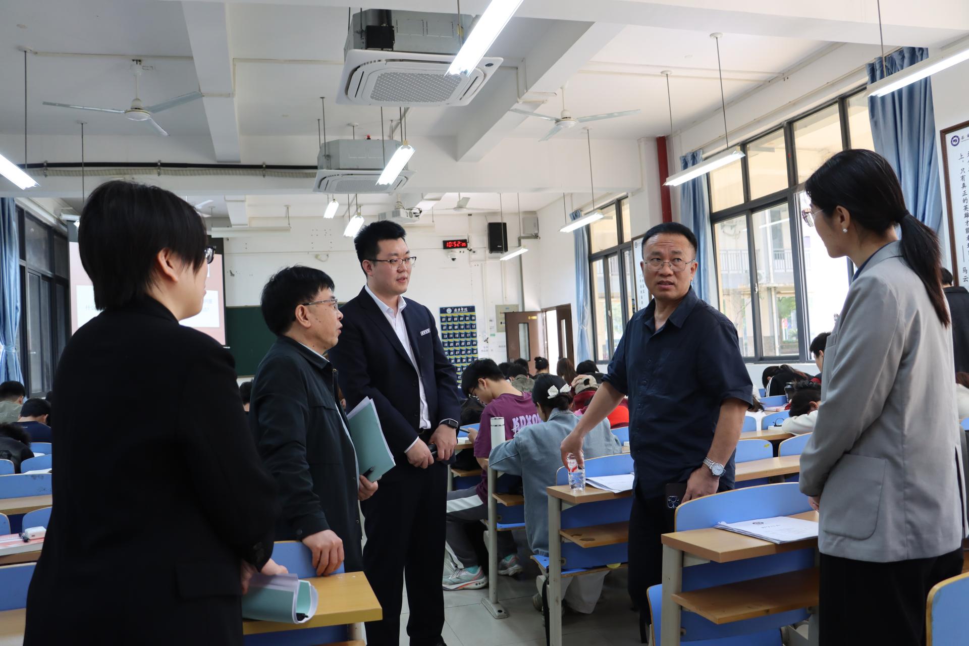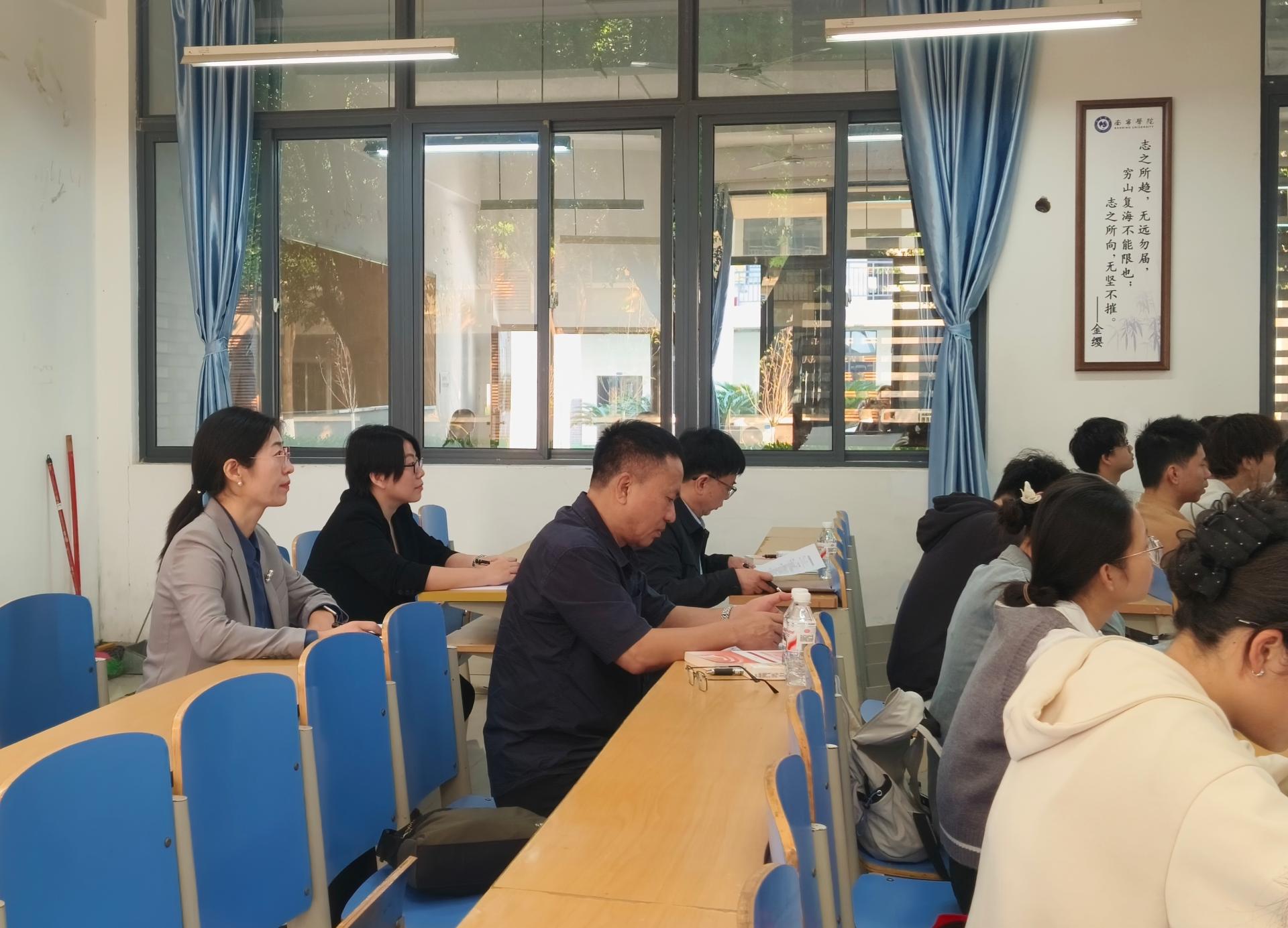 首先,王功名院长随机抽取课程,走进“习近平新时代中国特色社会主义思想概论”课堂,听取了耿悦老师讲授的“全面从严治党”专题内容。耿老师从学生困惑出发,以理论、数据、案例相结合的方式,从“为何‘从严’?”“何为‘全面’?”以及“效果如何?”三个角度层层推进,并以生成式学生问题结尾,逻辑严谨、内容详实。王院长认真记录教学各环节以及学生学习情况,全面了解教学成效。课后,王院长与耿老师深入交流,充分肯定其教学逻辑清晰、理论扎实、案例生动,学生学习效果好。