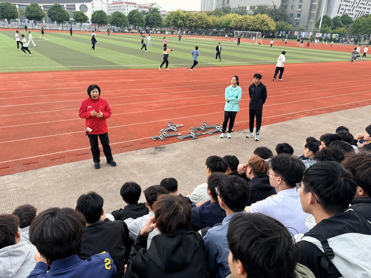12月17日下午,享有“亚洲女飞人”美誉的田玉梅教授在刚刚结束第十五届全国运动会紧张的指导工作后,回校为教育学院体育教育专业学子带来题为“短跑的技术动作与分析”的专业授课。她将运动解剖学、运动生理学、生物力学等理论与实践操作深度融合,为同学们搭建了近距离接触行业名师、精进专业技能的优质平台,受到师生广泛好评。