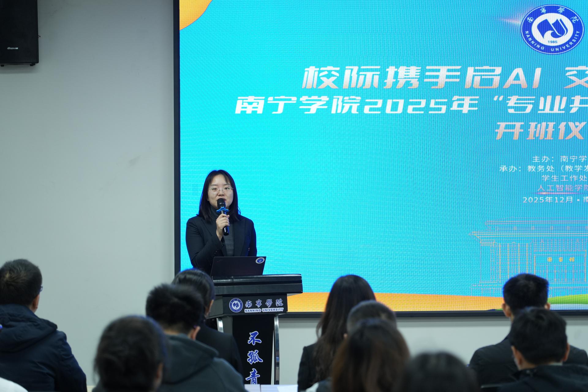 12月16日上午,南宁学院2025年“专业共建与实践交流”活动开班仪式在活动中心202室顺利举行。此次活动由南宁学院主办,教务处(教师发展中心)、学工处、人工智能学院联合承办,旨在通过跨校合作深化专业建设与产教融合创新。重庆人文科技学院领导、教师代表及30名交换生,与南宁学院副校长王宁章、相关职能部门负责人、人工智能学院、华为数字技术产业学院领导及教师代表共同出席仪式,共话协同育人新路径。