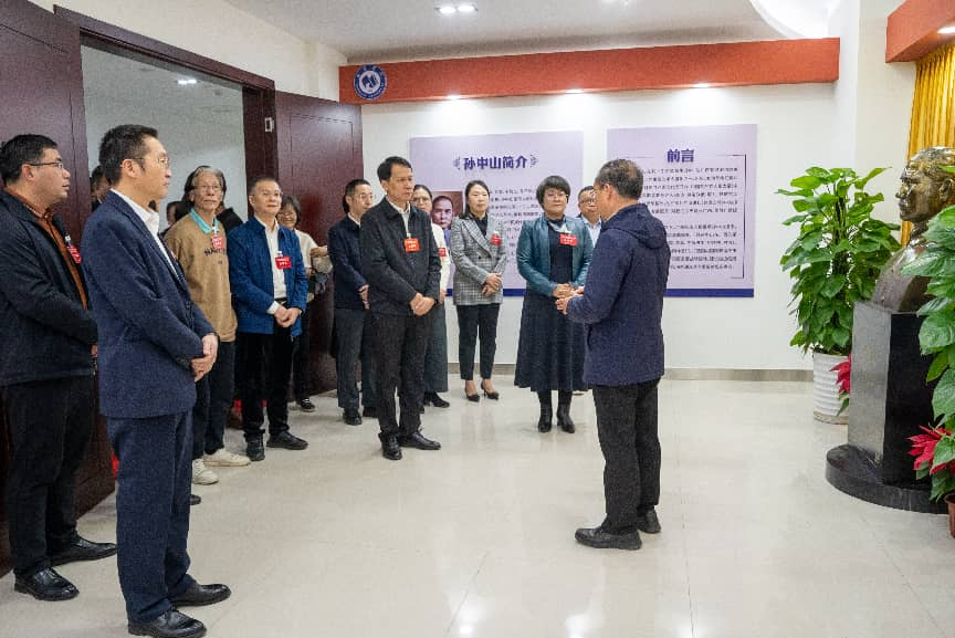 正值民革广西十四届四次全会在南宁召开之际,1月15日上午,民革广西区委领导班子成员、区委常委、区委委员及相关同志一行 70 人到南宁学院校史馆、“孙中山与广西”展示馆进行考察调研。