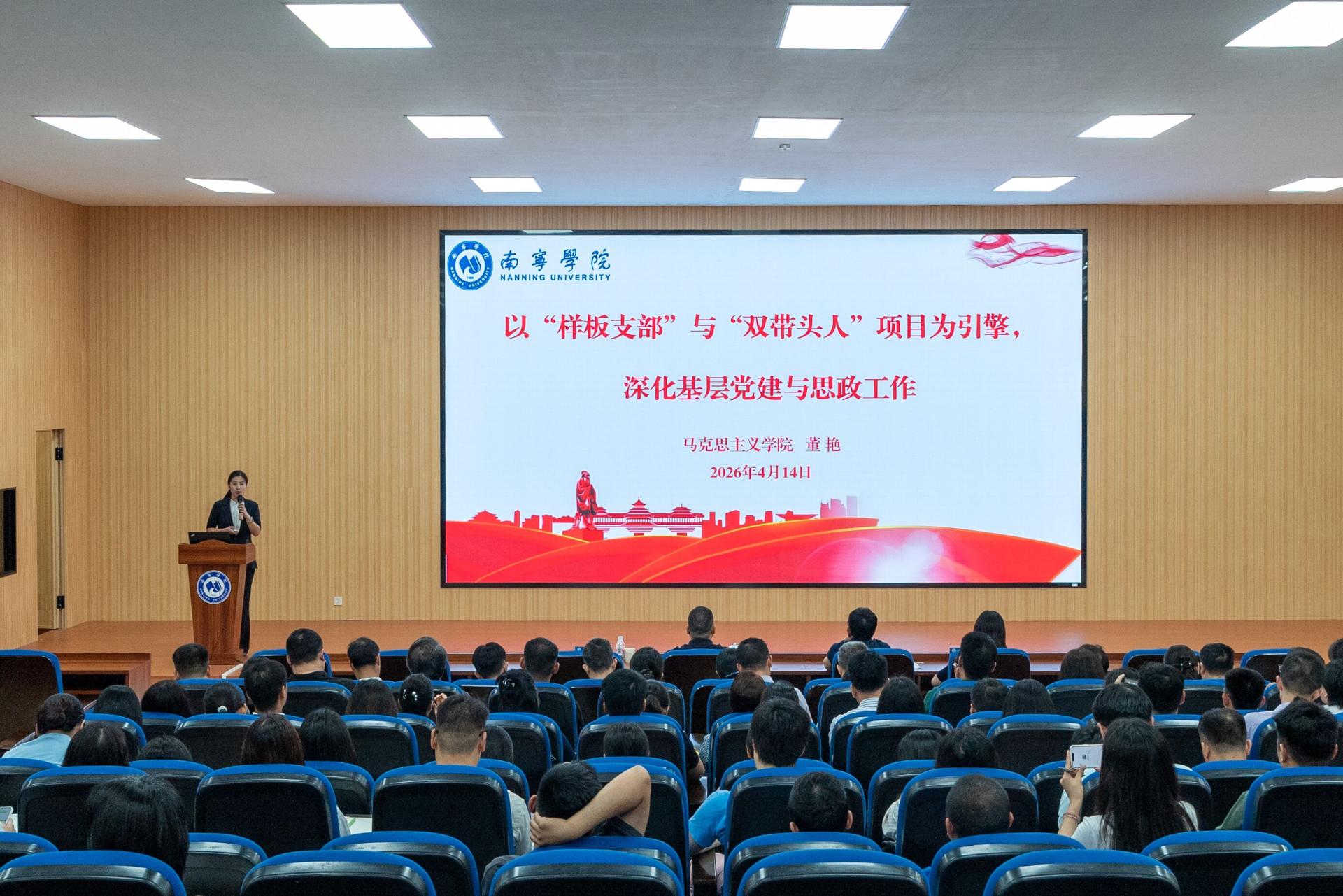 马克思主义学院党总支书记、教工第一党支部书记董艳围绕“以‘样板支部’与‘双带头人’项目为引擎,深化基层党建与思政工作”的主题做经验分享。她从“坚守职责、站稳阵地”“落实任务、发挥作用”两个方面,详细阐述了如何推进基层党建与思政工作。