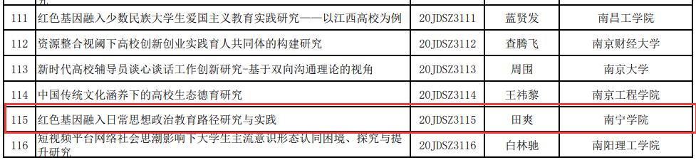 【喜讯】南宁学院教师获得2020年教育部人文社会科学研究专项任务项目立项