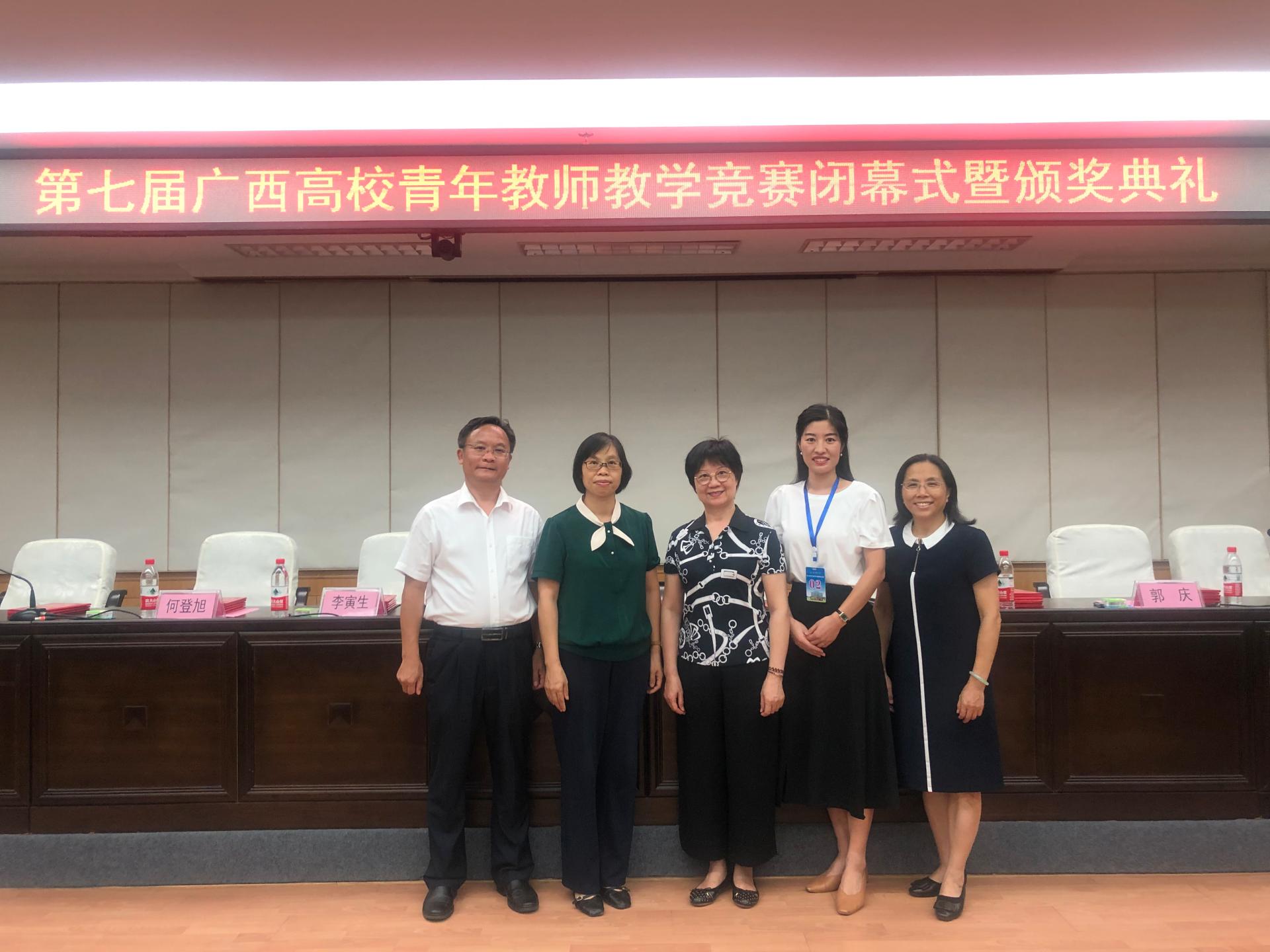 7月17日晚的闭幕式结束后,教育厅高教处李美清处长、区教育工会秦海玲常务副主席、广西师范大学林春逸副校长对学校再次突破一等奖表示肯定和鼓励。参赛教师及其团队也表示,虽然备赛过程艰辛,但在备赛中得到的锤炼和成长是教师职业生涯中极其珍贵的财富。获奖教师的优异表现也将激励着学校青年教师以更饱满的激情投入教育教学工作中,不断更新教学理念、改进教学方法、提升教学水平。(教务处供稿  图、文/黄誉洁)