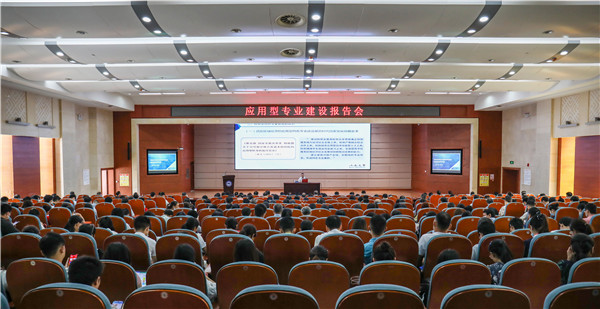 报告会中,张焜教授从地方高校发展的根本使命、应用型高校的根本特征和基本內涵谈起,详细阐述了应用型特色专业建设的认识与实践。张教授首先用树与土地来比喻地方高校与地方的关系。他指出,地方高校像一棵树一样,汲取着地方的养分、水分和阳光而茁壮成长,同时也给养育了大树的这片土地遮风挡雨、保水护土。因此,地方大学作为地域经济社会发展的生力军,其时代使命是引领区域经济社会发展。地方高校必须找准自己的定位,找准自己服务的层次,根据自身的能力,主动发现并满足地方的需求。