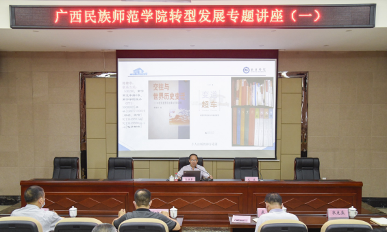 9月13日,广西民族师范学院举行“转型发展专题研讨”,邀请南宁学院副校长陈雄章教授举行题目为《深化产教融合,加快向应用型转变》的专题讲座。广西民族师范学院领导武波、韦永恒等校领导及全体中层领导干部参加学习。报告以深化产教融合为主线,全面介绍了南宁学院向应用型转变的十个方面重点转变。