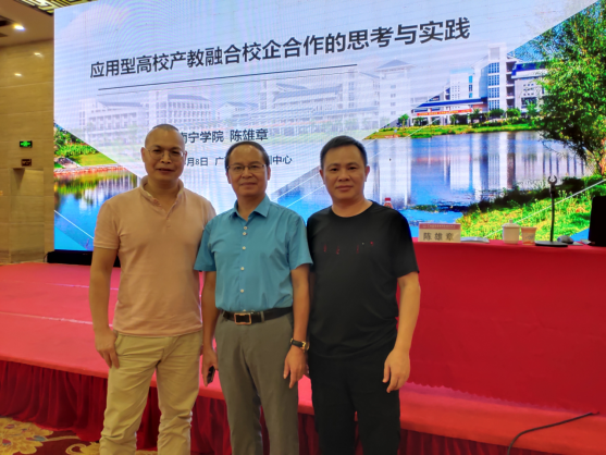 9月7日,广西机电职业技术学院举行主题为“提升精气神, 开启学院二次创业新征程”的2020年秋季学期全员培训班。陈雄章教授受邀作《产教融合建设现代产业学院的实践与思考》专题讲座。广西机电职业技术学院领导梁辉、赖晓桦等现场聆听报告,并做现场交流。