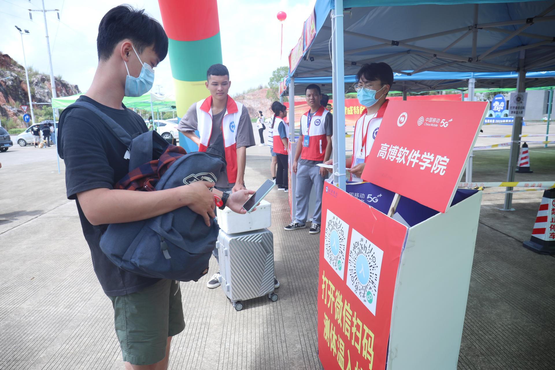 9月20日清晨,校道上彩旗飞扬,迎新空飘高挂,校园内一派热闹繁忙的景象。按照常态化疫情防控要求,新生需佩戴口罩、测量体温、行李消毒、扫健康码方可进入学校报到。在学校南门和北门,迎新工作人员和志愿者早已做好各项准备工作。
