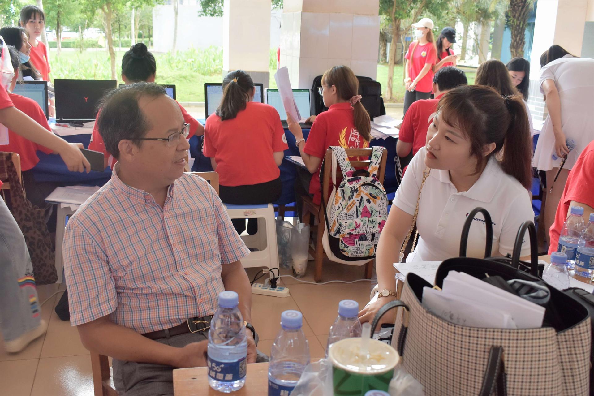 一直牵挂着迎新工作的校长赖每、党委书记刘彪、党委副书记覃存民、副校长陈雄章等校领导,带领党政办、学工处、教务处、后勤处等有关部门负责人,逐一走访各学院迎新点和各咨询服务点,看望新生及家长,慰问迎新工作人员。在各学院新生报到处,校领导详细了解迎新工作进展和新生到校情况,对迎新一线的工作人员周到细致的服务给予充分肯定,叮嘱大家一定要把迎新工作做实、做细,努力为新生提供最优质的服务,确保每一位新同学都能顺利快捷报到。