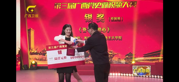 10月28日下午,“信仰伴我成长”——第三届广西党史微视频大赛颁奖仪式于广西广播电视台600平米演播厅隆重举行。学校马克思主义学院选送的作品《奋斗映初心》在本次大赛中获得校园组第一名“银奖”的好成绩。