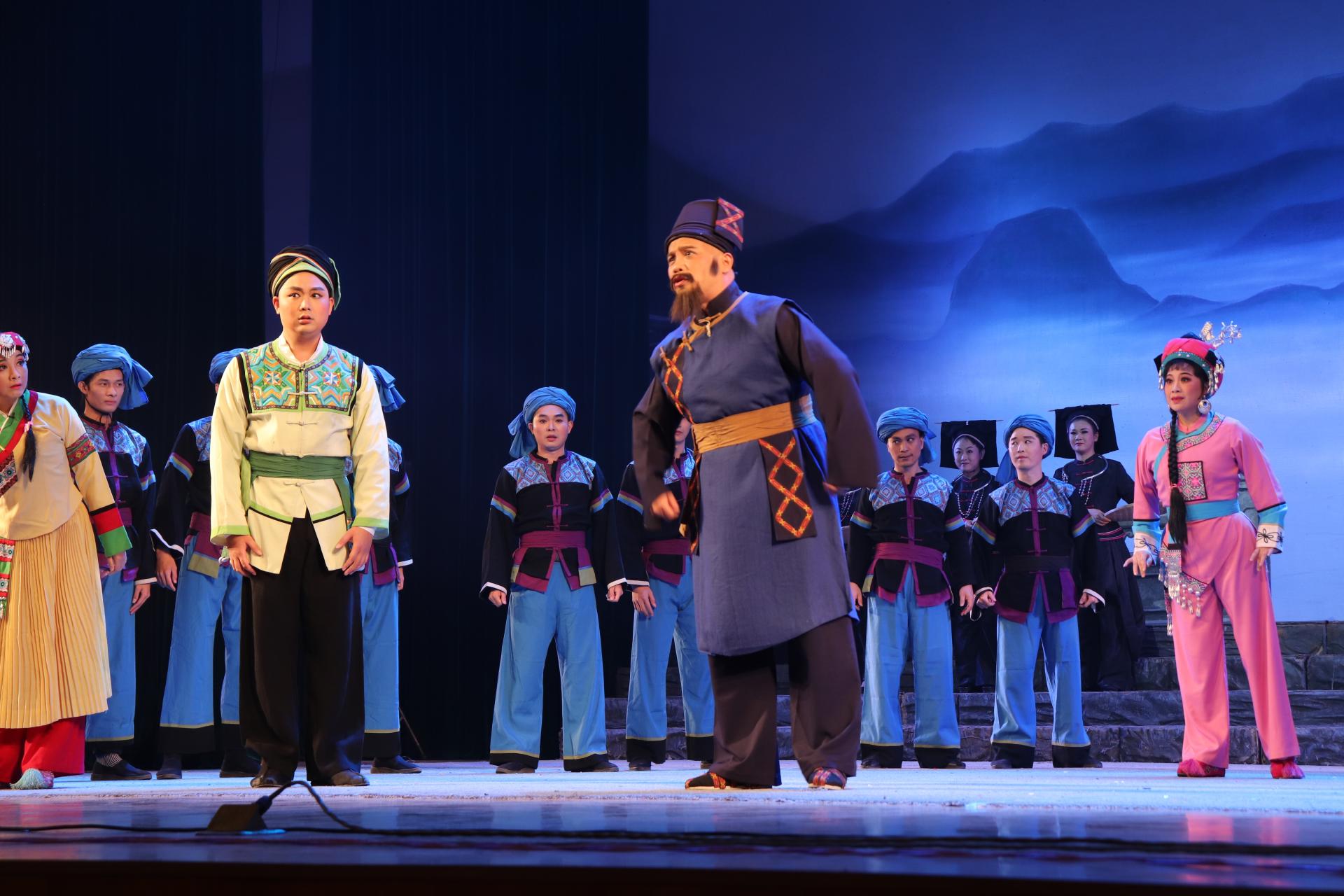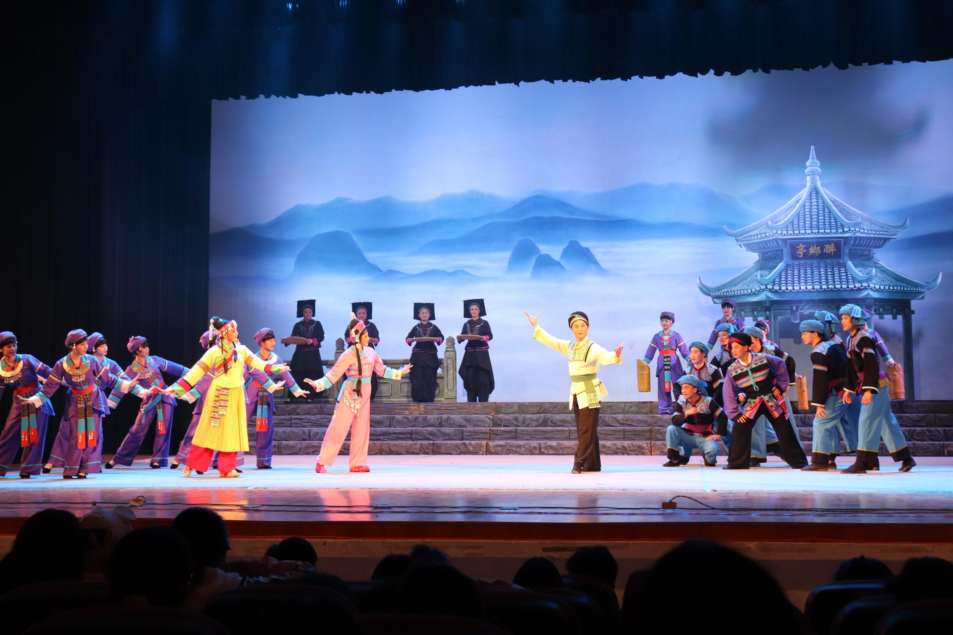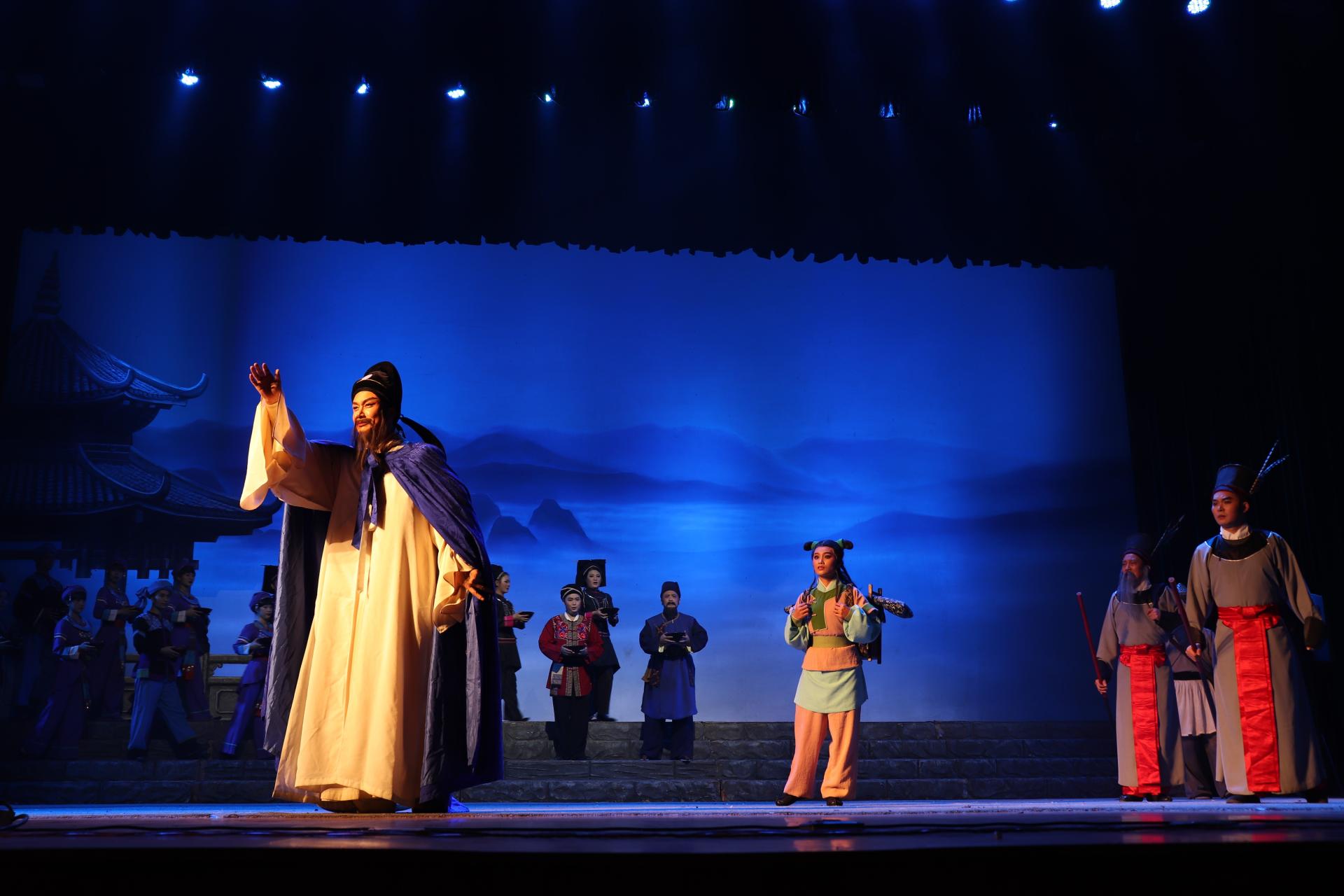 接着,来自南宁市文化艺术研究院的50余名演职人员开始演出,演出内容以北宋大词人秦观贬谪横州(今南宁横县)任编管期间兴办教育、传道授业、造福壮乡的史实为依据,以秦观为民办学的人生经历为线索,在历史上留下的一段感人故事,展现了其视横州百姓为子民的真挚情感,塑造了一个落难不落志、如海棠一般在任何地方都能顽强生根的形象。