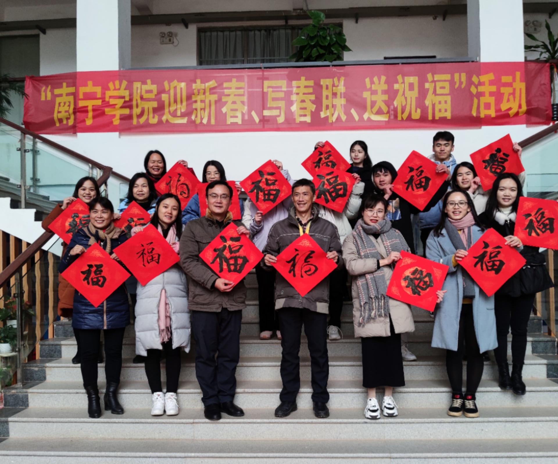 1月7-8日,在新年来临之际,为弘扬中华优秀传统文化,南宁学院工会、南宁学院书画协会和书法爱好者,在行政楼一楼大厅举行了“迎新春、送春联”活动,为学校师生送出温暖和祝福。