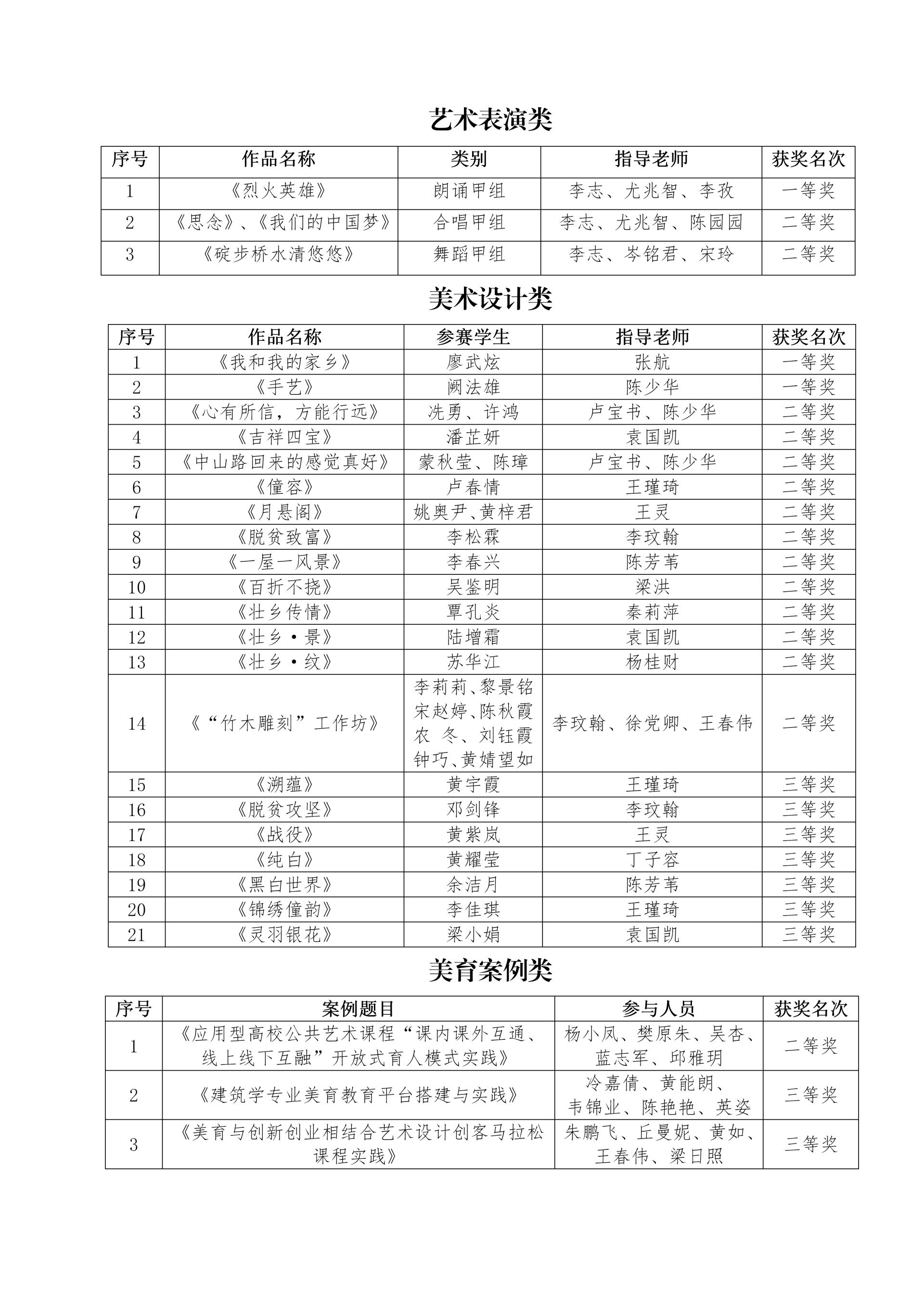 近日,由广西壮族自治区教育厅主办的广西第六届大学生艺术展演活动圆满落下帷幕。在本次展演中,学校最终收获28个奖项,其中学校获优秀组织奖1项;艺术表演类作品获一等奖1项、二等奖2项;艺术作品和艺术实践工坊获一等奖2项、二等奖12项、三等奖7项;美育创新改革案例获二等奖1项、三等奖2项。创下了学校在该项赛事的历史最好成绩!