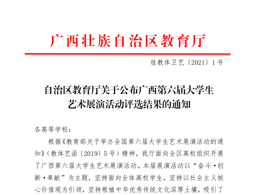 【喜讯】暖冬传喜讯,新年报佳音——南宁学院在广西第六届大学生艺术展演活动中喜创佳绩
