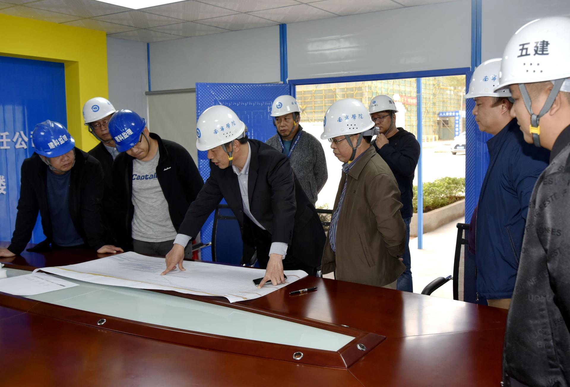 学校领导一行现场听取有关新建学生宿舍楼建设情况的具体汇报