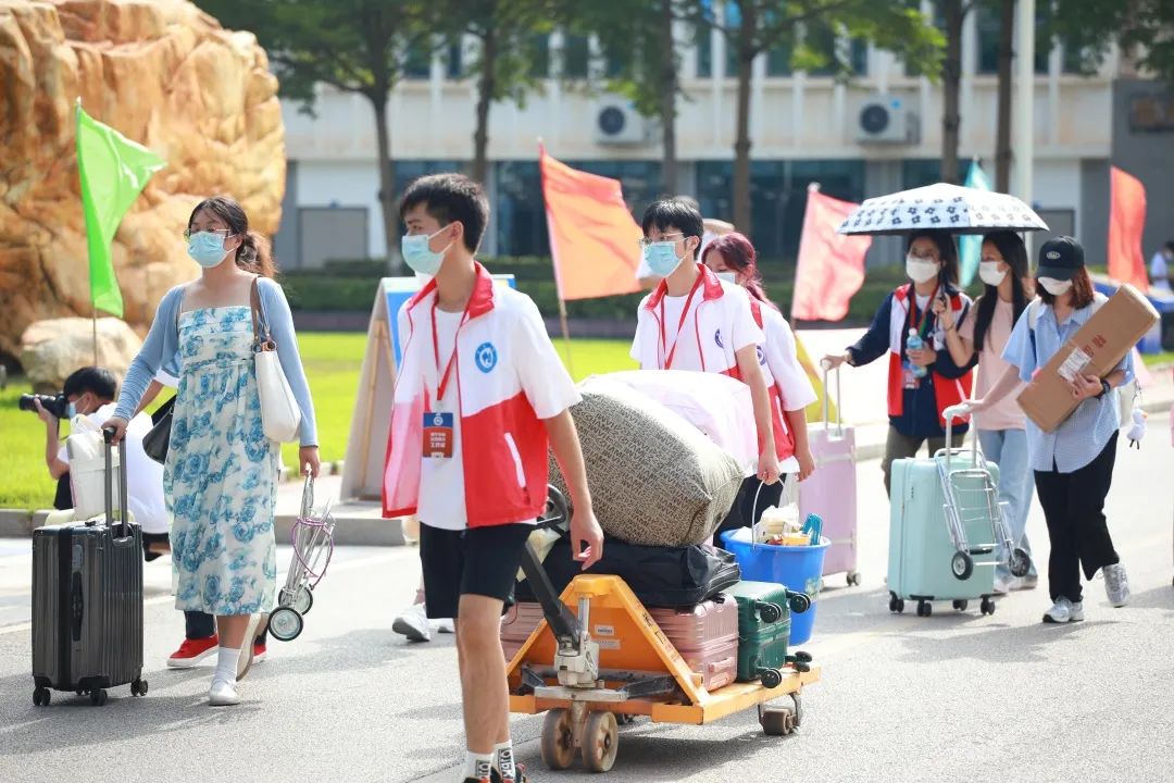 和往年一样,学校在南宁东站、南宁火车站、琅东客运站设置接站点,为新生入学提供点对点的暖心接站服务,确保新生安全到校。与此同时,学校在校内安排电瓶车用于接驳学生往返宿舍,安排拖车为新生运送行李。