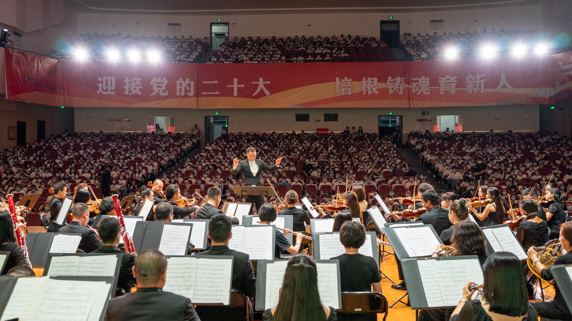德国哲学家雅思贝尔斯曾说:“教育的本质意味着:一棵树摇动另一棵树,一朵云推动另一朵云,一个灵魂唤醒另一个灵魂。”典礼现场,广西交响乐团演奏经典作品《红旗颂》《歌仙刘三姐》;广西演艺集团MIYA组合演唱了激昂振奋的青春之歌《少年》《旅程》。南院师生代表表演的小组合唱《夜空中最亮的星》表达老师犹如明亮的火炬、远方的灯塔以及黑暗中的点点星光,为学生照亮前进的道路,指引学生前进的方向,为学生送来光明和希望。充满生命力的街舞《华夏》既展现了“炎黄浩瀚沐苍霞”的古典意境,又把南院师生“挺起我骄傲的胸膛”的壮志豪迈,诠释了“中国精气神”;诗朗诵《在希望的田野上耕耘》深情讴歌教师是爱的耕耘者,教师是美的播种者,教师用辛勤的汗水浇灌学生的茁壮成长,用无私的奉献点燃学子们的希望。