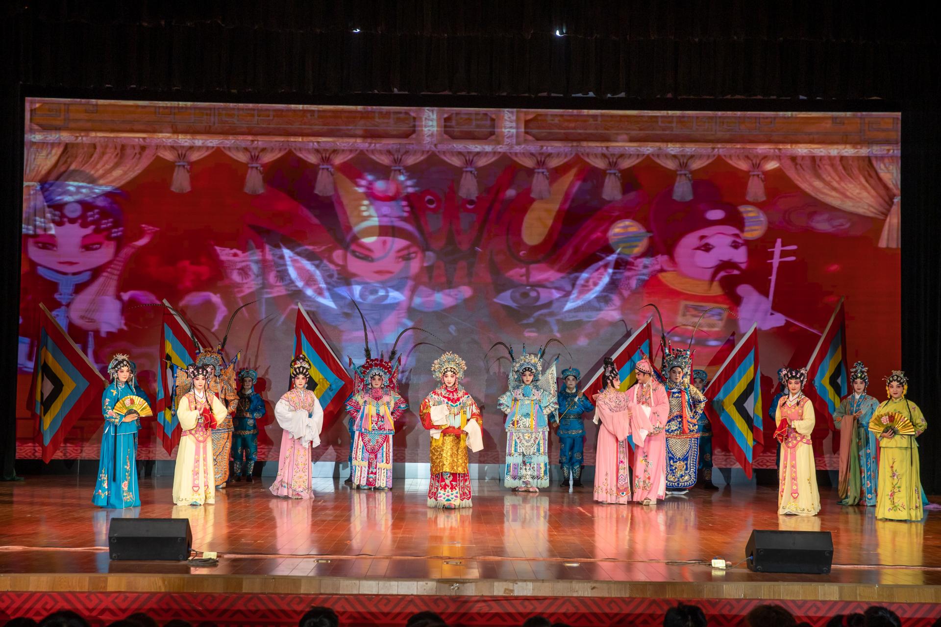 本次演出演员们先后为师生表演了《邕城戏韵》、粤剧折子戏《贵妃醉酒》、粤剧小品《一起向未来》、粤剧小戏《催房租》、《盛世谱华章》等精彩节目。这些节目,既有广西地区特有的曲艺,又有传统风味浓厚的折子戏;既有取材于历史典故的经典粤剧,又有反映当下疫情与现实生活的原创小品,民族的和社会的在这里结合,传统的与现代的在此时交汇,共同呈现了一台精彩绝伦的戏曲演出。