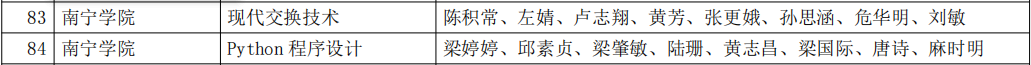 日前,自治区教育厅发布《自治区教育厅关于公布2022年普通本科高校课程思政示范课程名单的通知》(桂教高教〔2022〕52号),公布了2022年自治区级课程思政示范课程名单,南宁学院的《现代交换技术》《Python程序设计》2门课程入选自治区级课程思政示范课程。同时,《现代交换技术》课程的教师团队:陈积常、左婧、卢志翔、黄芳、张更娥、孙思涵、危华明、刘敏,《Python程序设计》课程的教师团队:梁婷婷、邱素贞、梁肇敏、陆珊、黄志昌、梁国际、唐诗、麻时明获评为课程思政教学名师和团队。