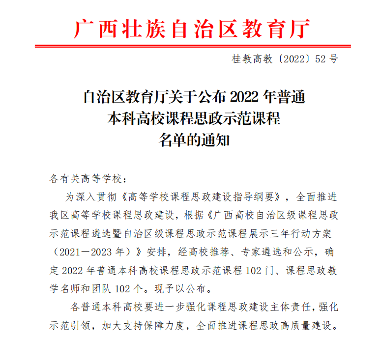 【喜讯】南宁学院2门课程入选2022年自治区级课程思政示范课程