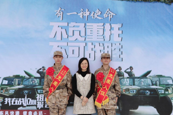 艺术与设计学院黄洁婷老师和入伍学生合影