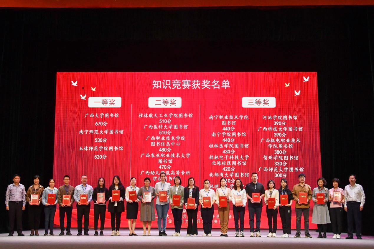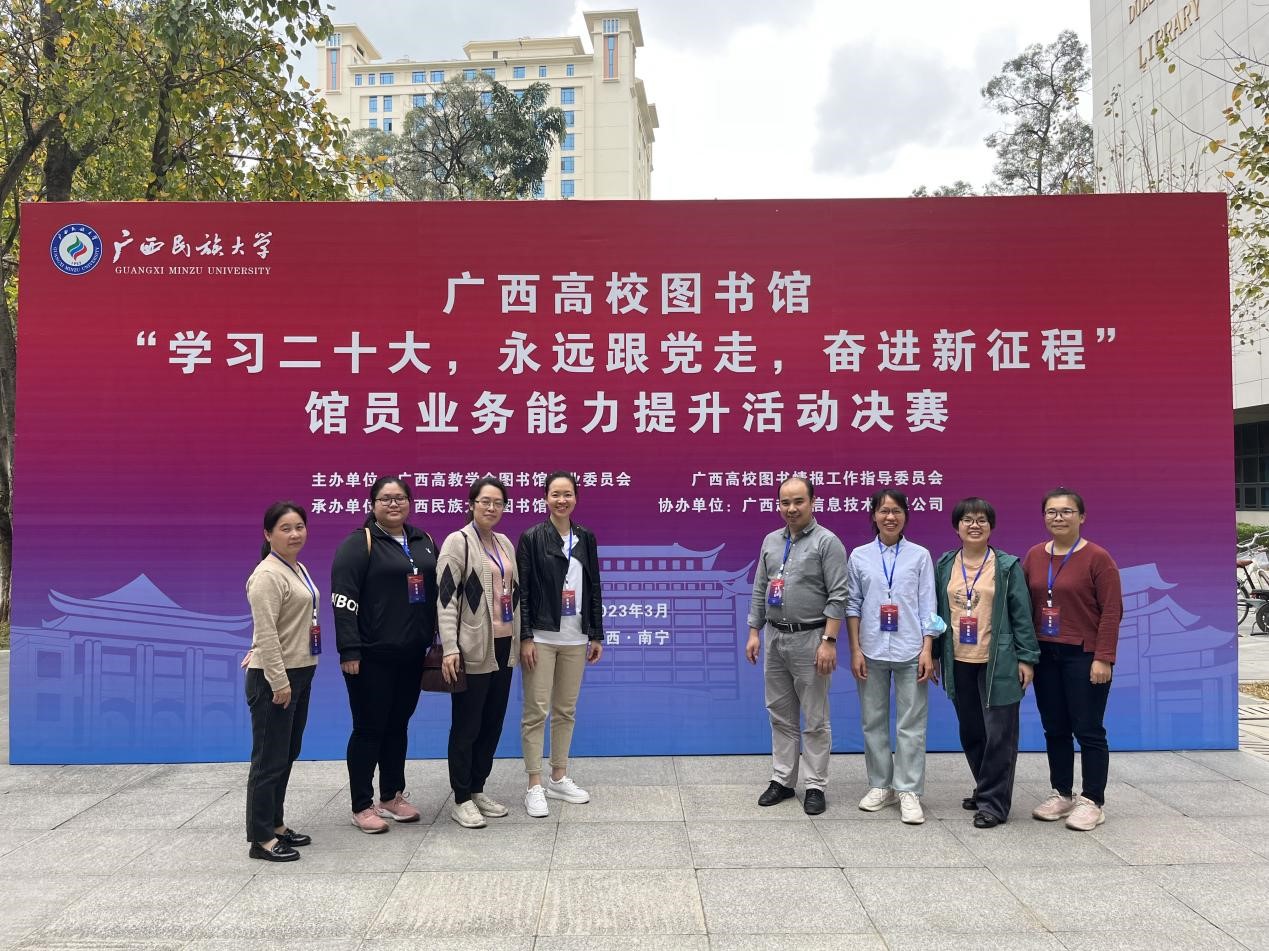 3月17日,广西高校图书馆“学习二十大,永远跟党走,奋进新征程”馆员业务能力提升活动决赛在广西民族大学图书馆落下帷幕,经过激烈角逐,南宁学院图书馆参赛队荣获全区一等奖1项,二等奖1项,三等奖2项的好成绩。