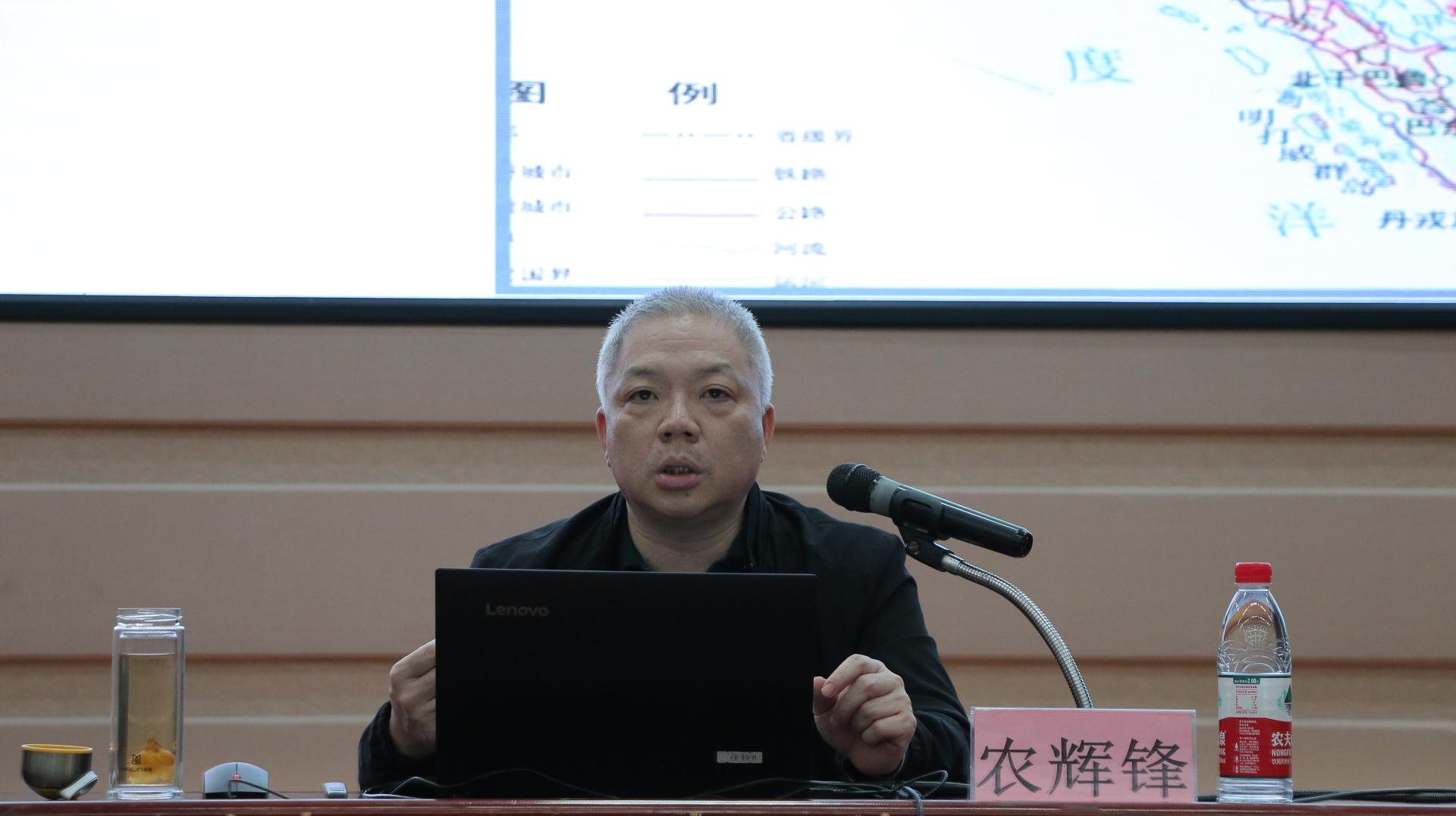 农辉锋教授以《铸牢中华民族共同体意识进一步巩固广西民族团结》为题,从精准把握铸牢中华民族共同体意识丰富内涵、深刻把握广西推进民族团结的基本经验、精准把握进一步巩固广西民族团结的路径选择三个方面进行讲授,深入剖析中华民族共同体意识形成的社会历史条件,解释了“铸牢中华民族共同体意识”提出的过程、科学内涵及其重大意义。农教授还从广西民族概况、民族文化的格局、推进民族团结的基本经验分析了广西各民族之间的文化发展情况,增进了参会师生对广西民族文化的深入了解,从中明确广西推进民族团结的基本经验。在进一步巩固广西民族团结的路径选择上,他指出要在构筑中华民族共有精神家园上干在实处、走在前列,在推动各民族共同走向社会主义现代化上率先突破、取得实效,在促进各民族交往交流交融上创新推进、再创佳绩,在提升民族事务治理体系和治理能力现代化水平上开拓进取、再上台阶,在坚决防范民族领域重大风险隐患,维护民族团结和边疆安宁上彰显新担当、作出新贡献。在授课过程中,农教授用大量丰富的图文、数据进行展示,多角度、多层次把铸牢中华民族共同体意识教育带进校园,深入我校师生心中。