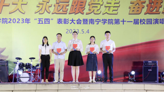 五月的大地,涌动的春潮。为深入学习贯彻习近平新时代中国特色社会主义思想和党的二十大精神,进一步弘扬“爱国、进步、民主、科学”的五四精神,表彰过去一年我校共青团工作中涌现的一批先进集体和个人,5月4号晚,南宁学院2023年“五四”表彰大会暨南宁学院第十一届校园演唱会在学校田径场举行。学生工作处副处长韦相晓老师、学生工作处副处长刘波老师、人工智能学院党总支书记、副院长李志老师、校团委副书记尤兆智老师、校团委老师、各二级学院团委书记及2022级全体新生参与大会。