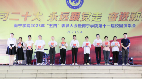 2023年是全面贯彻落实党的二十大精神的开局之年,此次“五四”表彰大会暨第十一届校园演唱会,旨在表彰先进,进一步将五四精神深化在同学们的心中,引导青年积极进取,奋发向上,引领青年充分发挥先进模范作用,带动更多的集体和个人,努力追求和书写新时代南宁学院的新篇章。(学生工作处供稿)