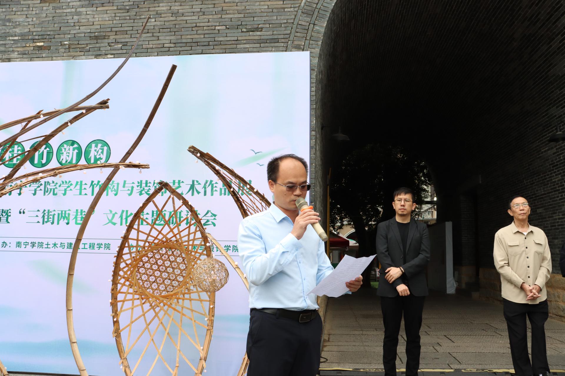 为切实践行南宁学院“应用型,开放式,新体验”的办学理念,大力促进学科交流及专业建设,挖掘地方特色资源,弘扬地方优秀传统文化,2023年5月14日上午由南宁学院土木与建筑工程学院、艺术与设计学院联合举办的“桂竹新构—南宁学院学生竹构与装饰艺术作品展暨“三街两巷”文化主题研讨会”在三街两巷仓西门开幕,展览为期3天。