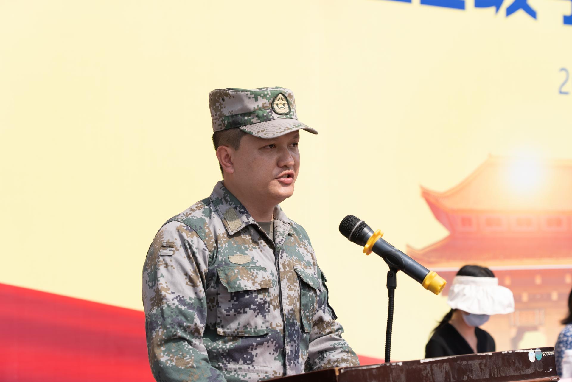 承训单位负责人覃红星在表彰大会上发言,充分肯定了同学们在军训中获得的成绩和进步,希望同学们把军人的好思想好作风带到学习和生活中去,高标准、严要求,时刻以军人的品质要求自己,提高国防意识、国防观念。