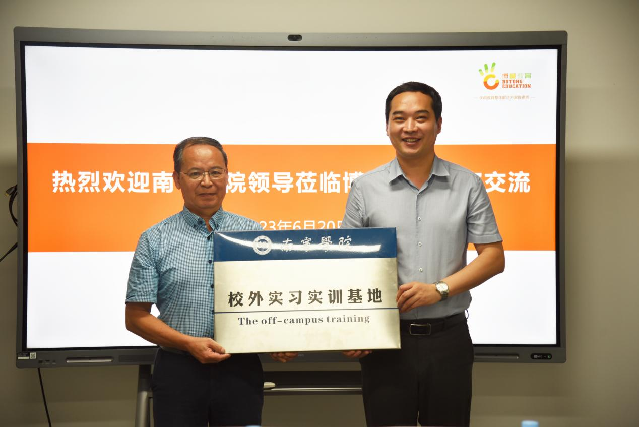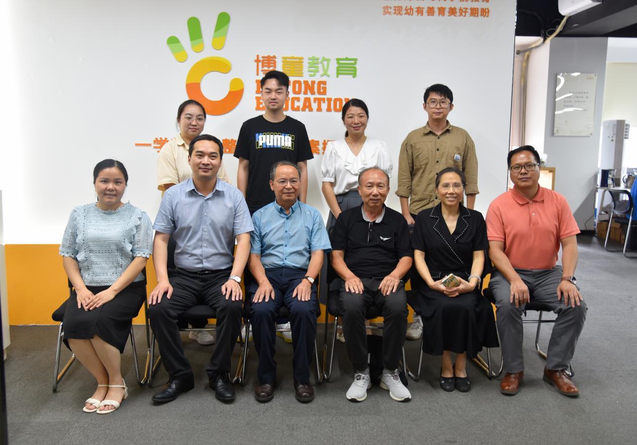 座谈会上,刘浩院长播放了博童教育和北部湾幼教论坛的视频资料,并向与会人员介绍了博童教育产教融合情况。随后,陈雄章副校长简要介绍了南宁学院十年本科办学取得的丰硕成果,着重强调了产教融合在应用型本科高校建设中的重要价值。他表示,双方的合作应当兼顾高校办学的公益性和企业经营的营利性,实现资源互动,做到互利共赢。博童教育(深圳)有限公司方面也表示,希望能够与南宁学院在学前教育专业人才培养方案制定、实习实训基地建设、赛事与论坛活动以及课题研究等方面开展深入合作,并为南宁学院学前教育新专业的建设提供了宝贵的建议。最后,南宁学院副校长一行在总经理的带领下参观了博童教育(深圳)有限公司的实习实训基地,并进行授牌仪式。