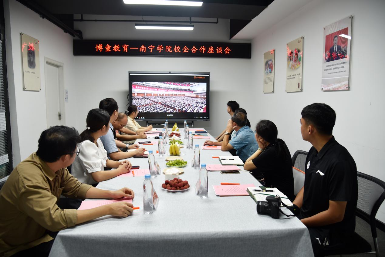 2023年6月20日上午,南宁学院与博童教育(深圳)有限公司在南宁市良庆区万科大厦进行了校企合作座谈会。南宁学院副校长陈雄章、通识教育学院院长黄瓅、通识教育学院副院长黄玉、博童教育首席专家李小邕、博童教育总经理贵尚明和博童教育研究院执行院长刘浩等专家领导出席了座谈会。