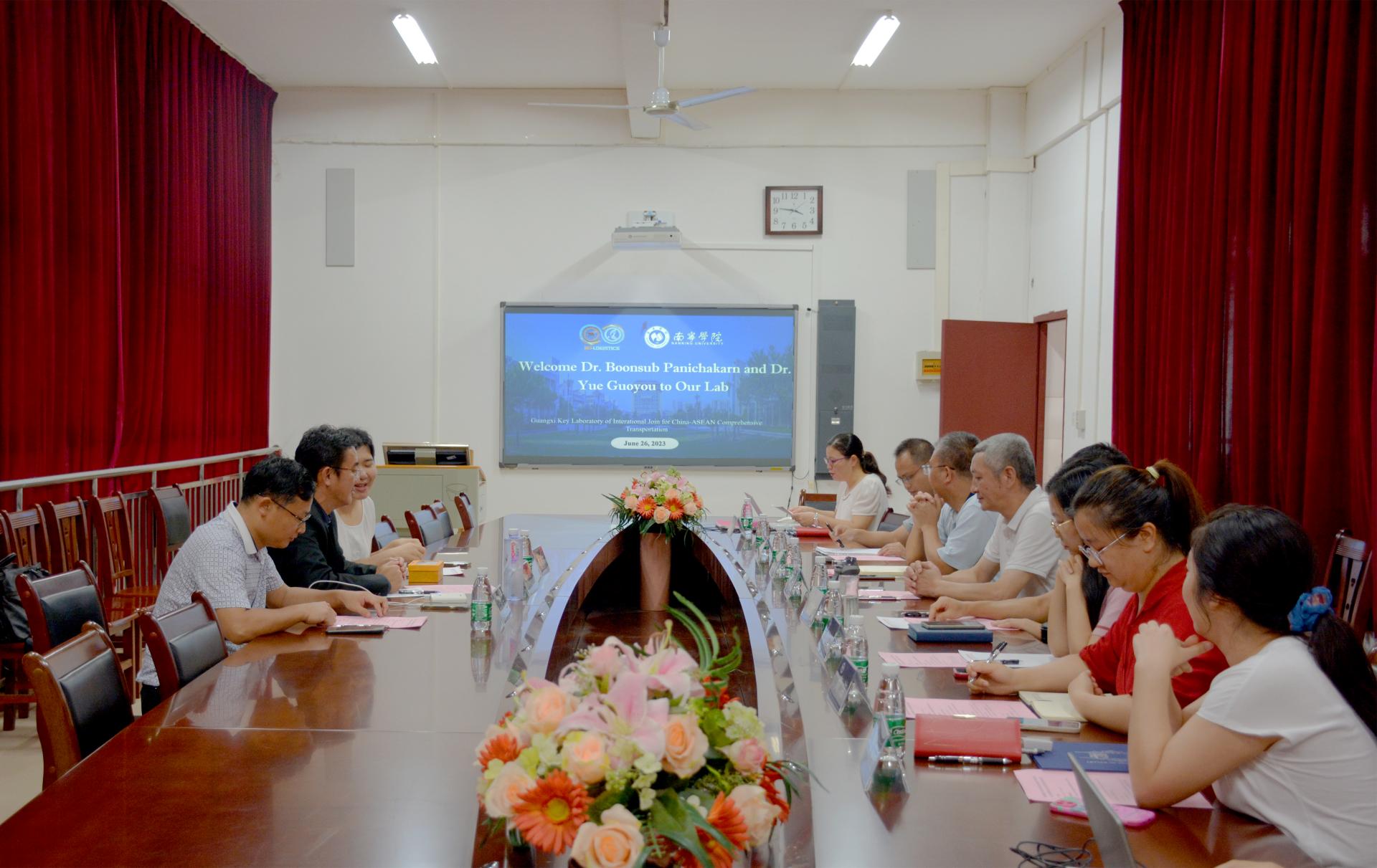 6月26日至6月27日,广西中国-东盟综合交通国际联合重点实验室邀请泰国那黎宣大学Boonsub Panichakarn博士到访南宁学院并参加为期两天的学术交流与学术讲座活动。Boonsub Panichakarn博士曾任泰国那黎宣大学副校长、物流与供应链学院院长,博士生导师,主要研究领域为物流与供应链,现任东盟物流学术网络研究院主席,是东盟地区著名物流专家。