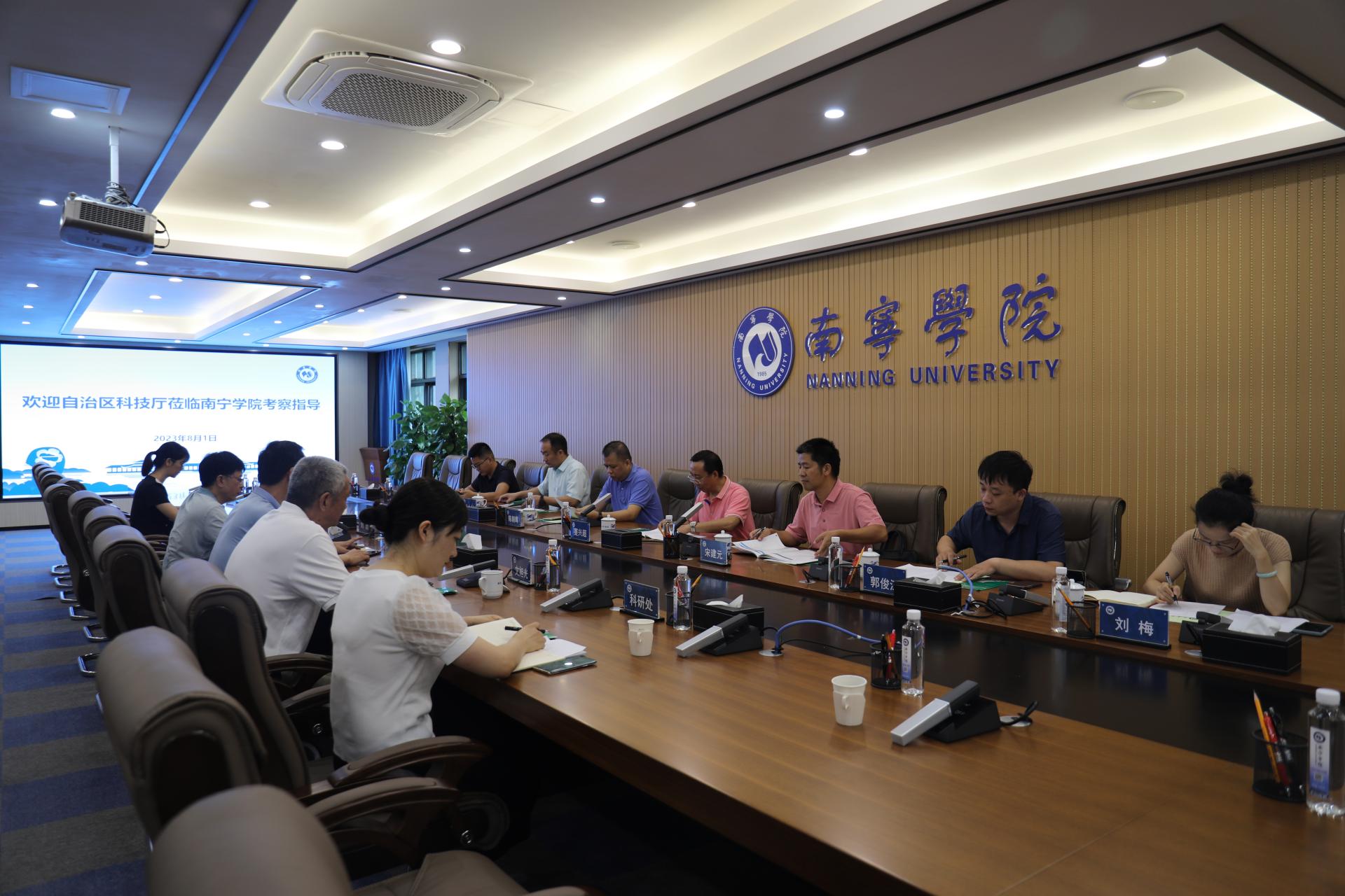 8月1日,广西壮族自治区科学技术厅副厅长蹇兴超一行来南宁学院考察调研,校长李栋学、党委书记刘彪陪同调研,双方在行政楼400会议室召开座谈交流会。