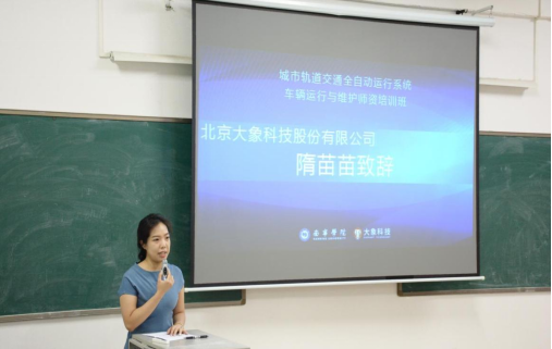 隋苗苗副部长代表北京大象科技有限公司发言,对本次培训班进行整体介绍,并衷心感谢南宁学院及学校重点实验室各位领导对此次培训班的精心组织和高度重视;大象科技依靠教育部协同育人平台积极开展校企合作项目,拓宽校企间合作与交流,深化职业教育与企业服务,努力为城市轨道交通行业相关高校及企业提供优质服务,不断为城轨行业输送人才。