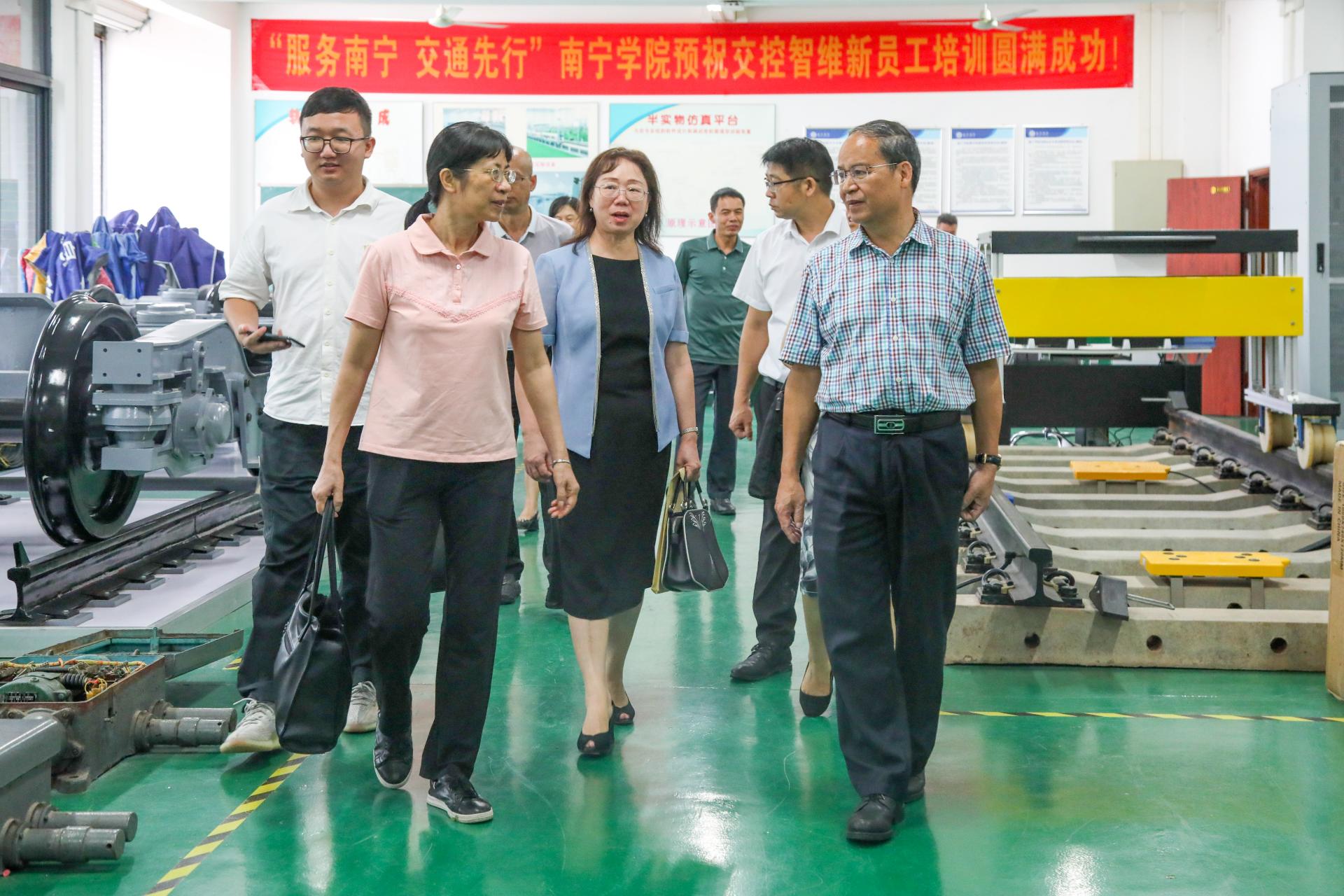 赵雄鹰主任一行实地考察了学校艺术长廊、智能制造研创中心、广西中国-东盟综合交通国际联合重点实验室,深入了解学校的特色学科建设、科研建设以及实验室建设等教学工作的开展情况,对学校应用型人才培养以及推进产教融合发展所取得的成绩表示赞许,并表示学校再接再厉,继续优化各项教育改革与发展工作,助力地区产业发展。