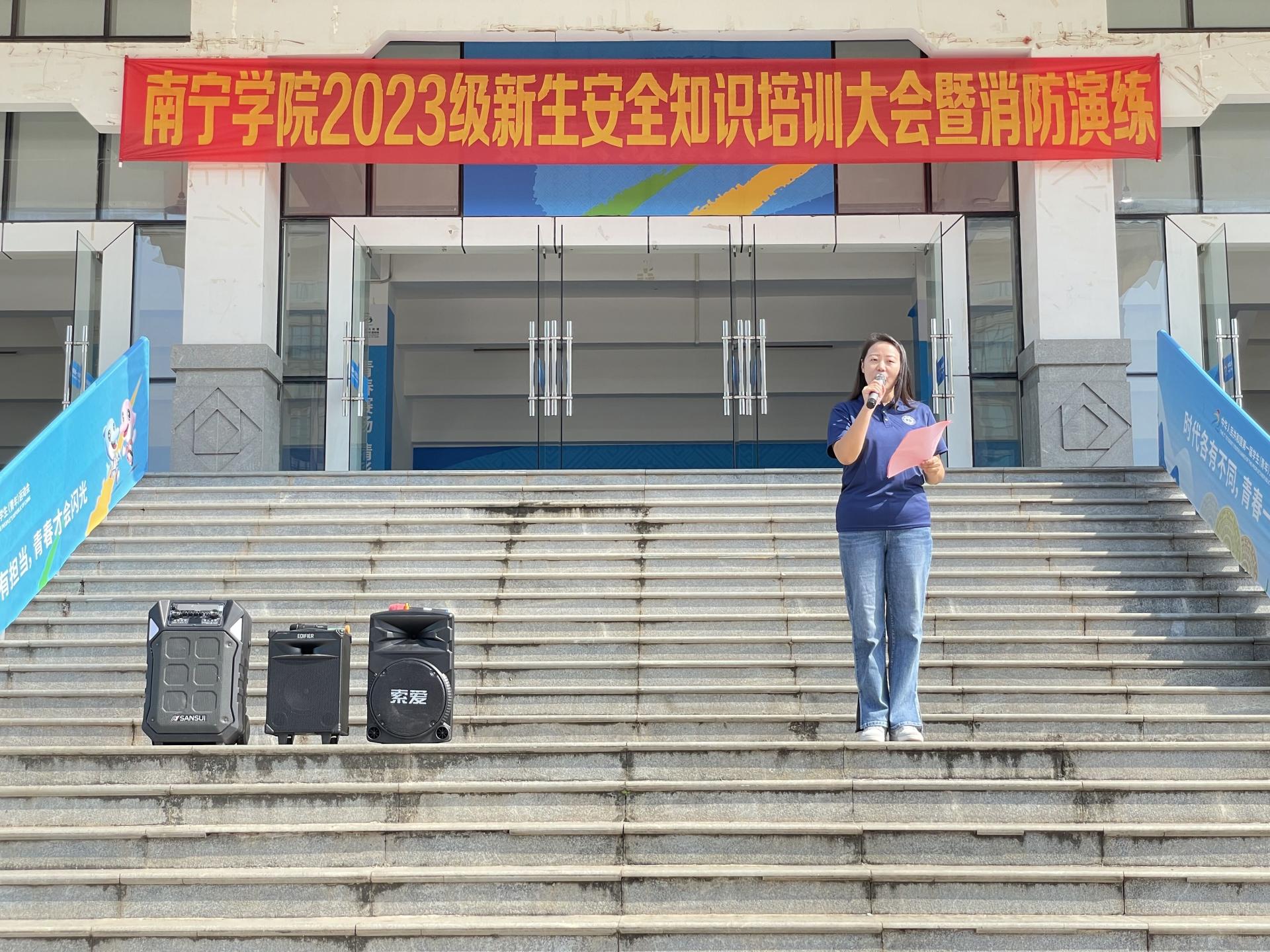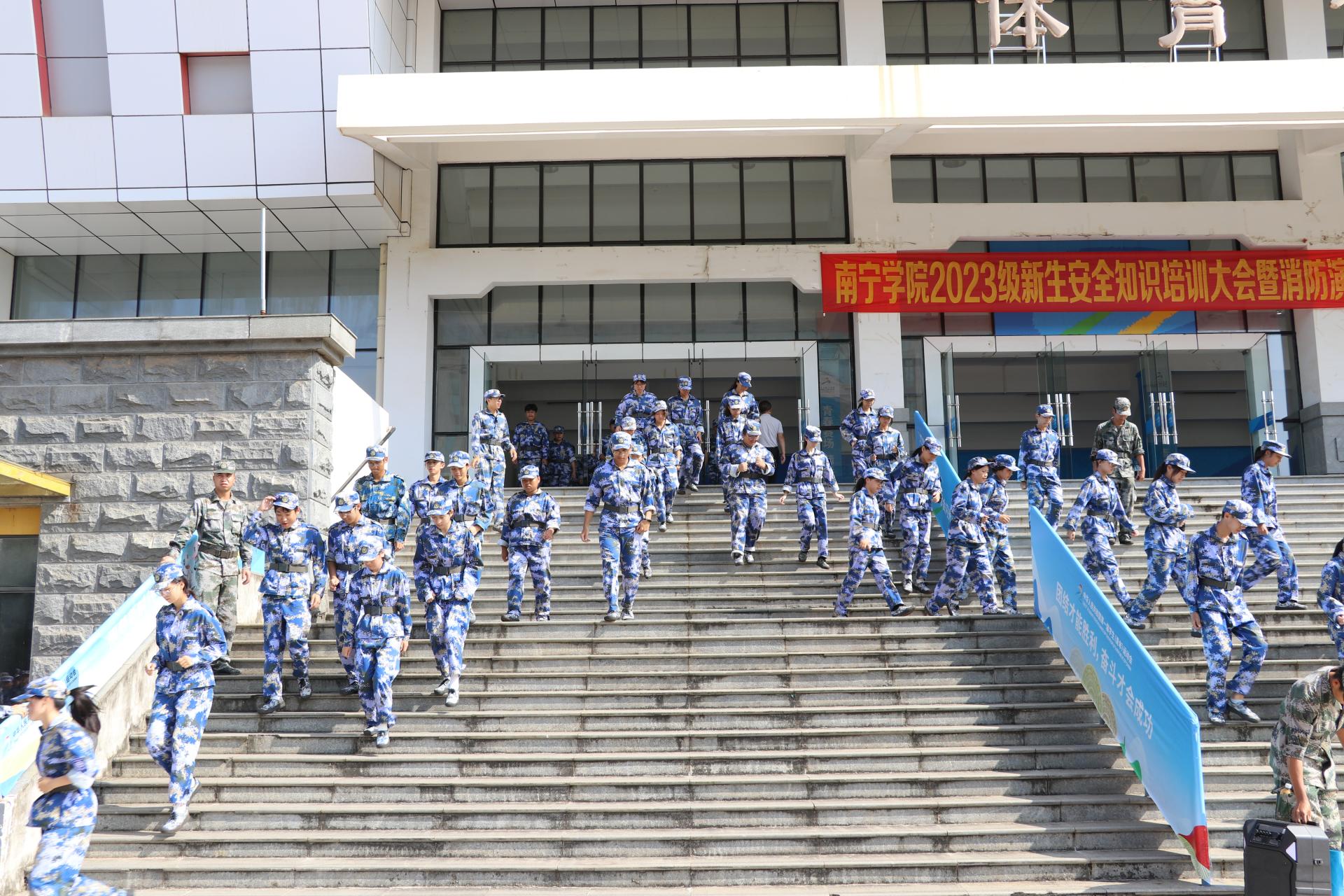 为增强学生对消防风险的防范意识,提高学生面对灾情的处理能力,保障学生的生命安全,2023年9月22日上午,我校举行了2023级学生消防安全知识培训暨疏散演练活动。学校邀请了南宁市邕宁区消防救援大队宣传教员梁以学及相关消防战士为2023级学生进行消防安全知识培训与疏散演练,学生工作处、后勤保障与基建管理处主要负责同志,各学院、部门相关工作人员参与了本次活动。