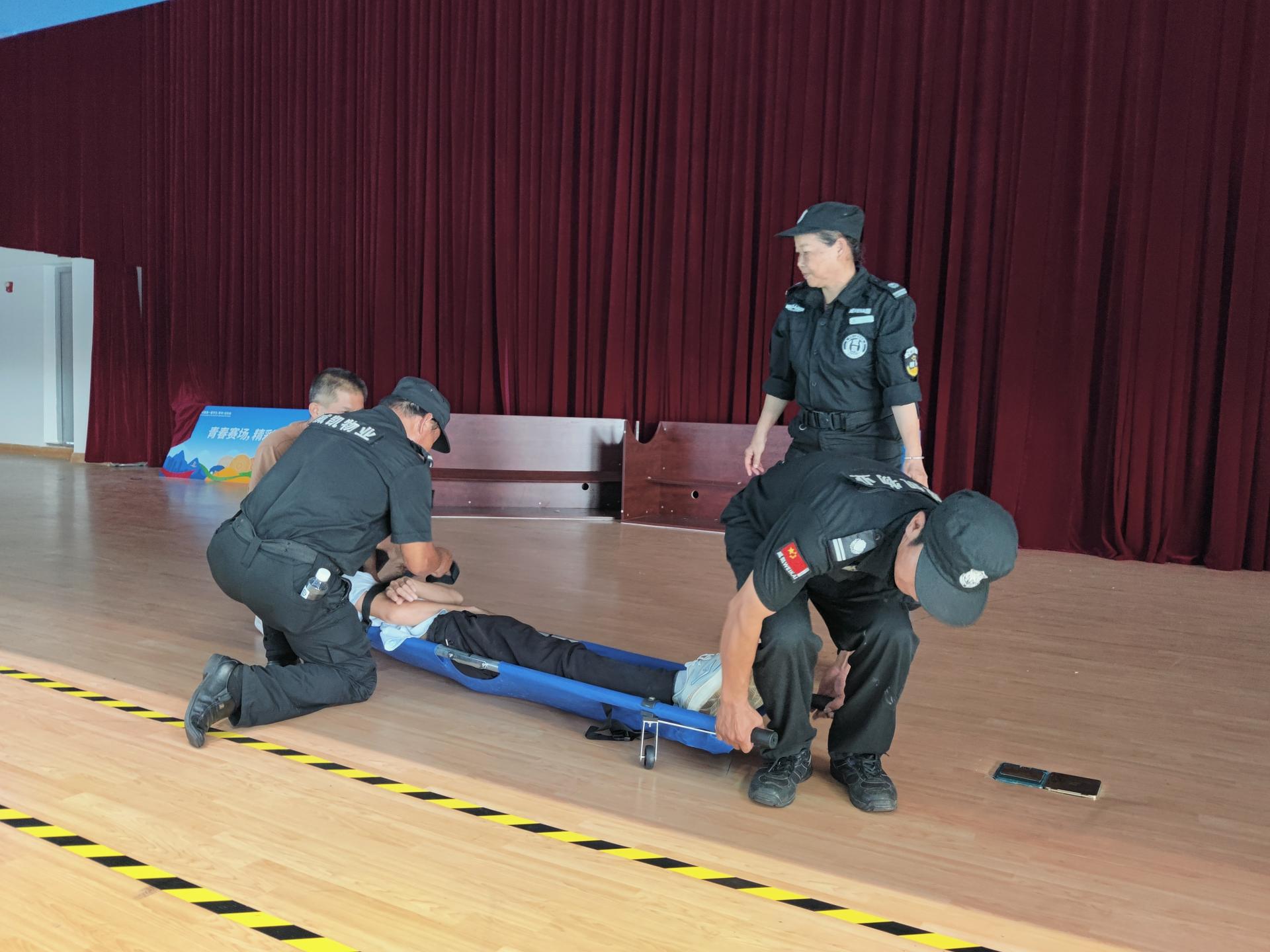 消防应急疏散演练是本次活动的第二项内容。学生在教官带领下到体育馆就位,体育馆各出入口的安全引导员由相关部门以及二级学院工作人员担任。火情发生后,水电保障科工作人员立即断电并初步灭火,火情警报响起后,消防控制室上报现场火情及人员情况,增派救援人员前往,并广播通知学生疏散,教官带领学生迅速经消防通道疏散到室外,整个过程紧张有序。